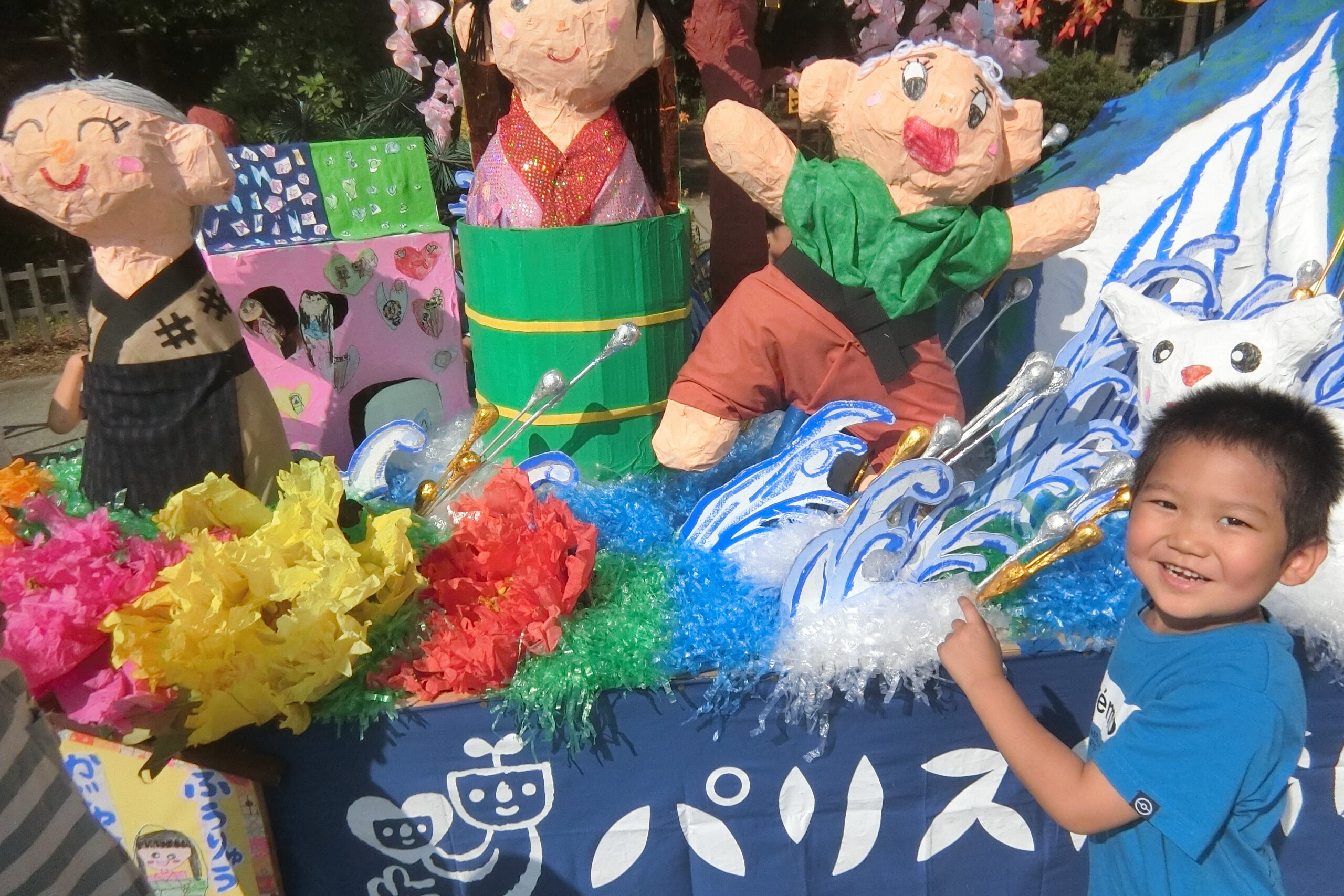 ボタンの花と波は本物の山車の人からもらったんだよ。