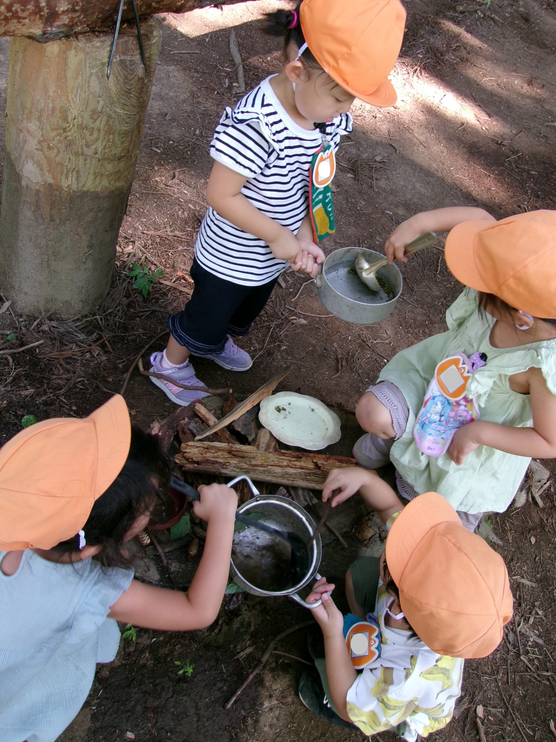 バーベキューのかまどを使ってうみ組さん(3歳児)今日もお料理!