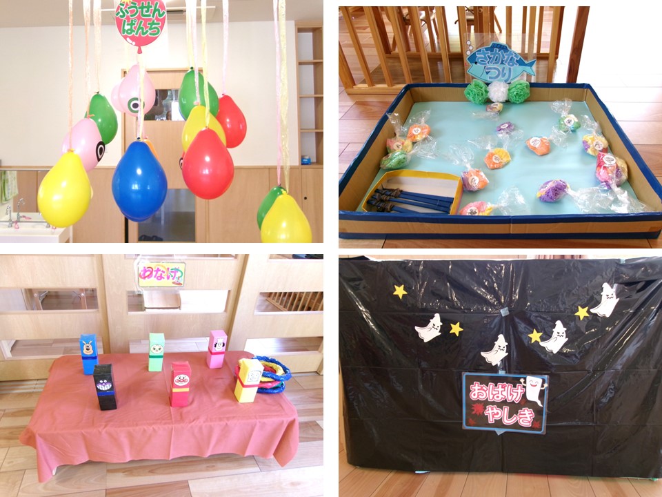 準備してるコーナーは、風船パンチ、魚釣り、お化け屋敷など盛りだくさん!