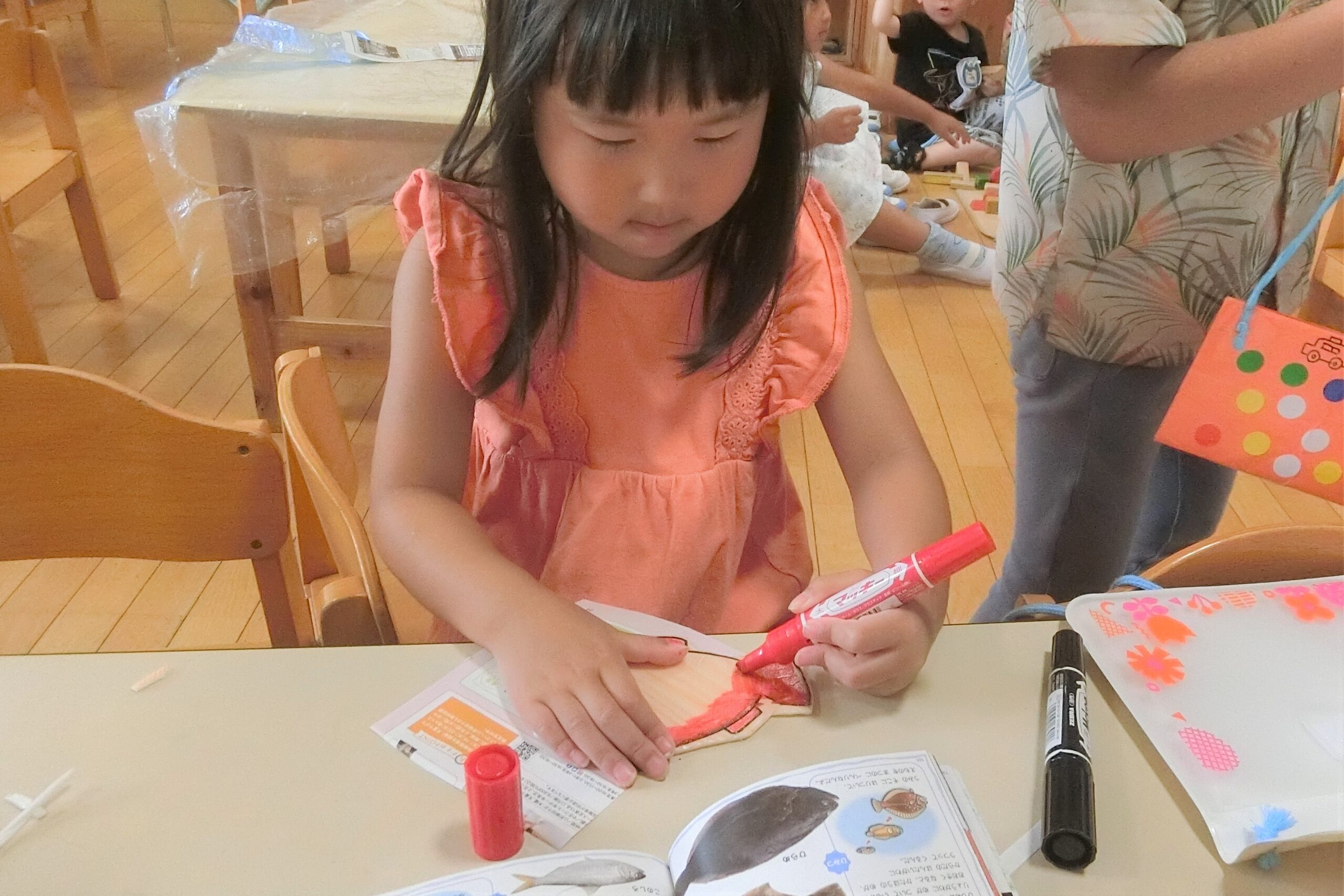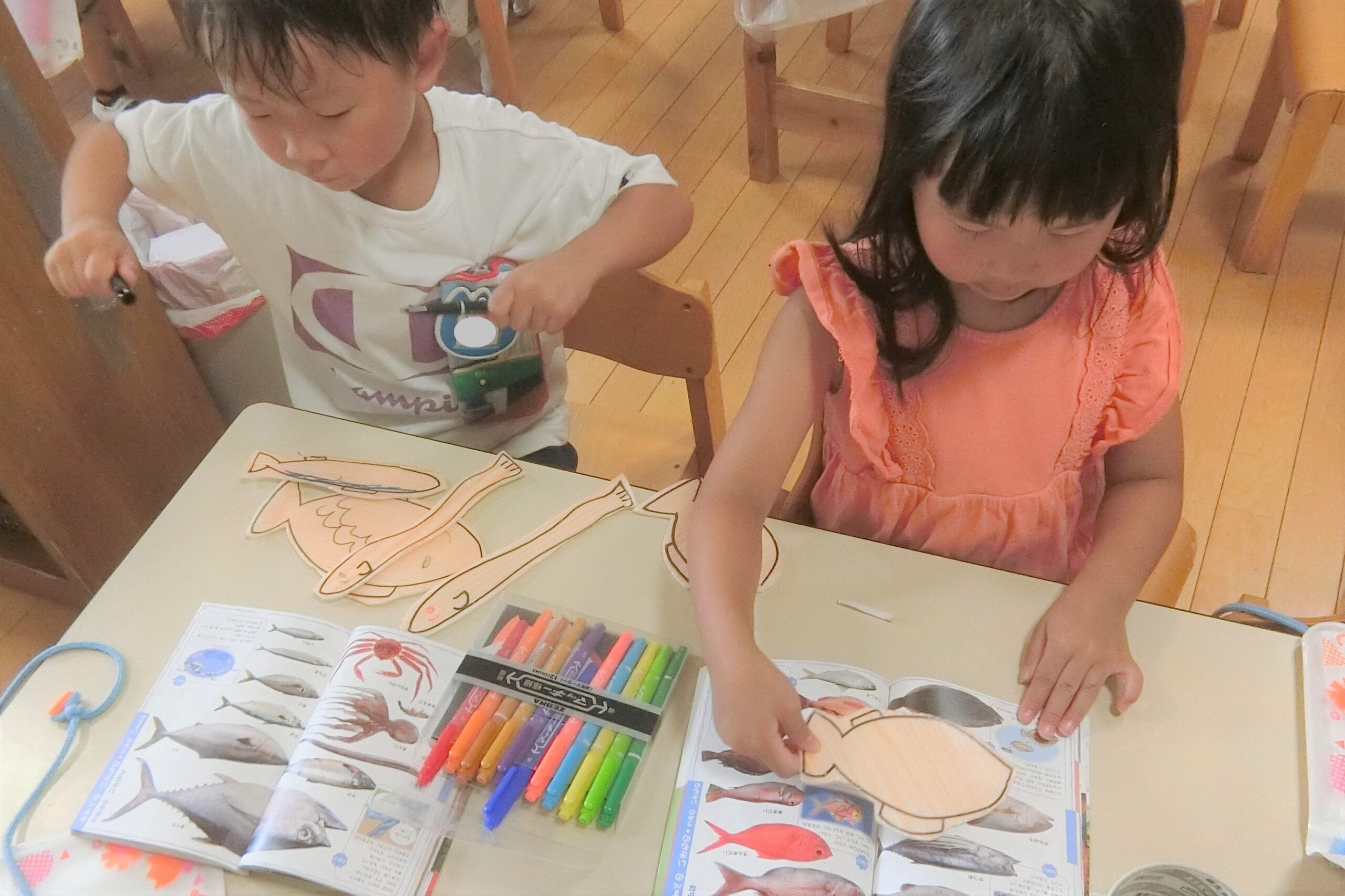 どんなお魚つくる? 図鑑を見ながら細かく観察。