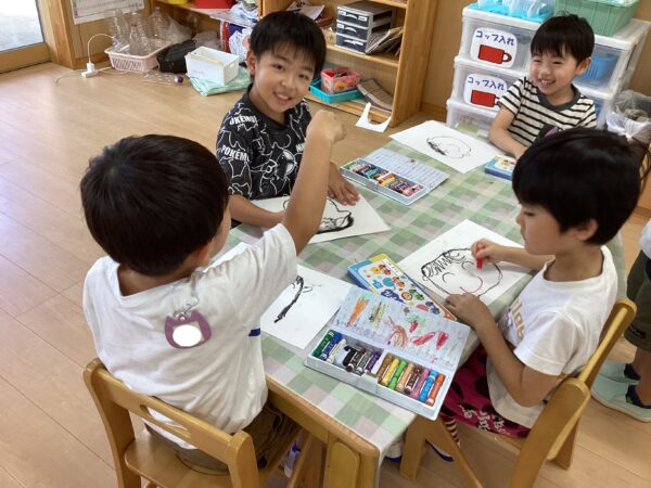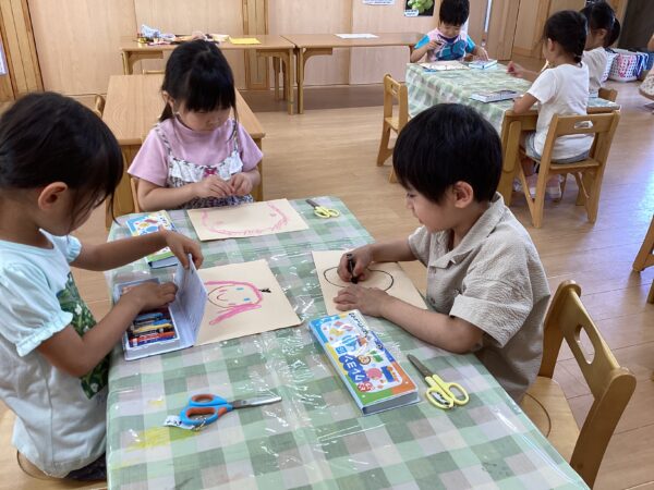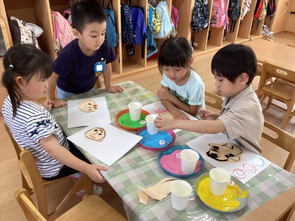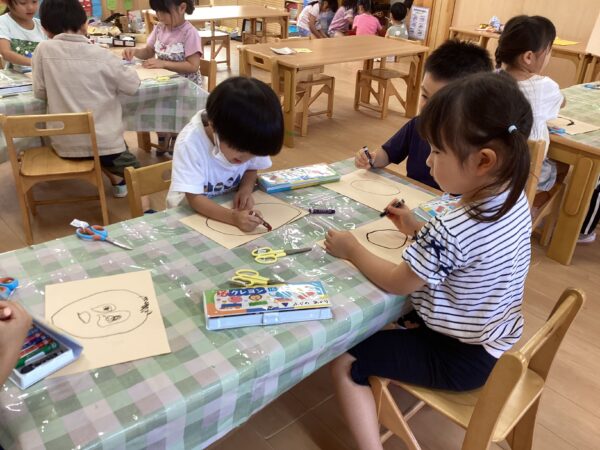 ゆりグループ(4歳児)は、自分の顔を描き、