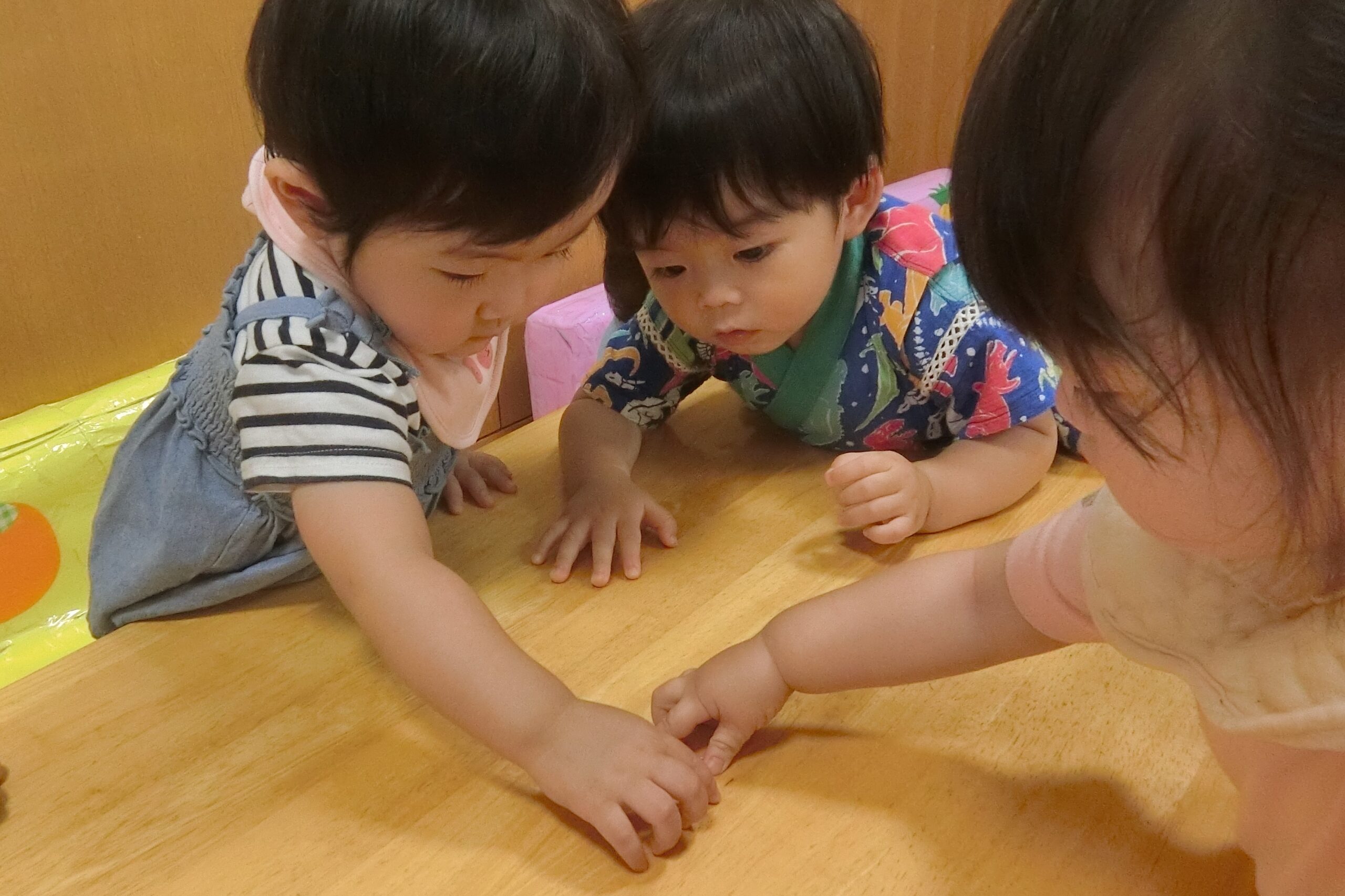 ゆめ組(0歳児)さんはみんな仲よし~。💛