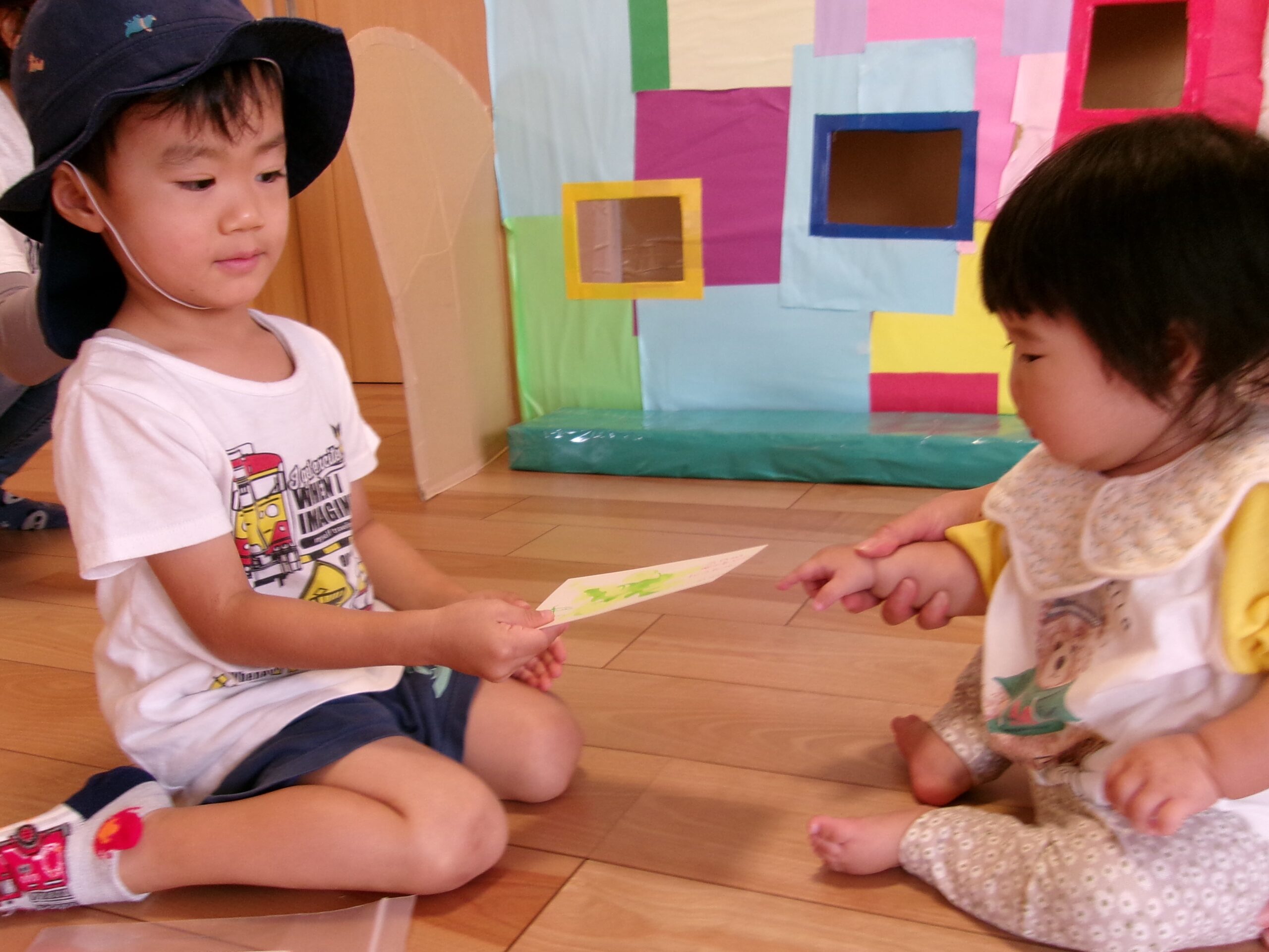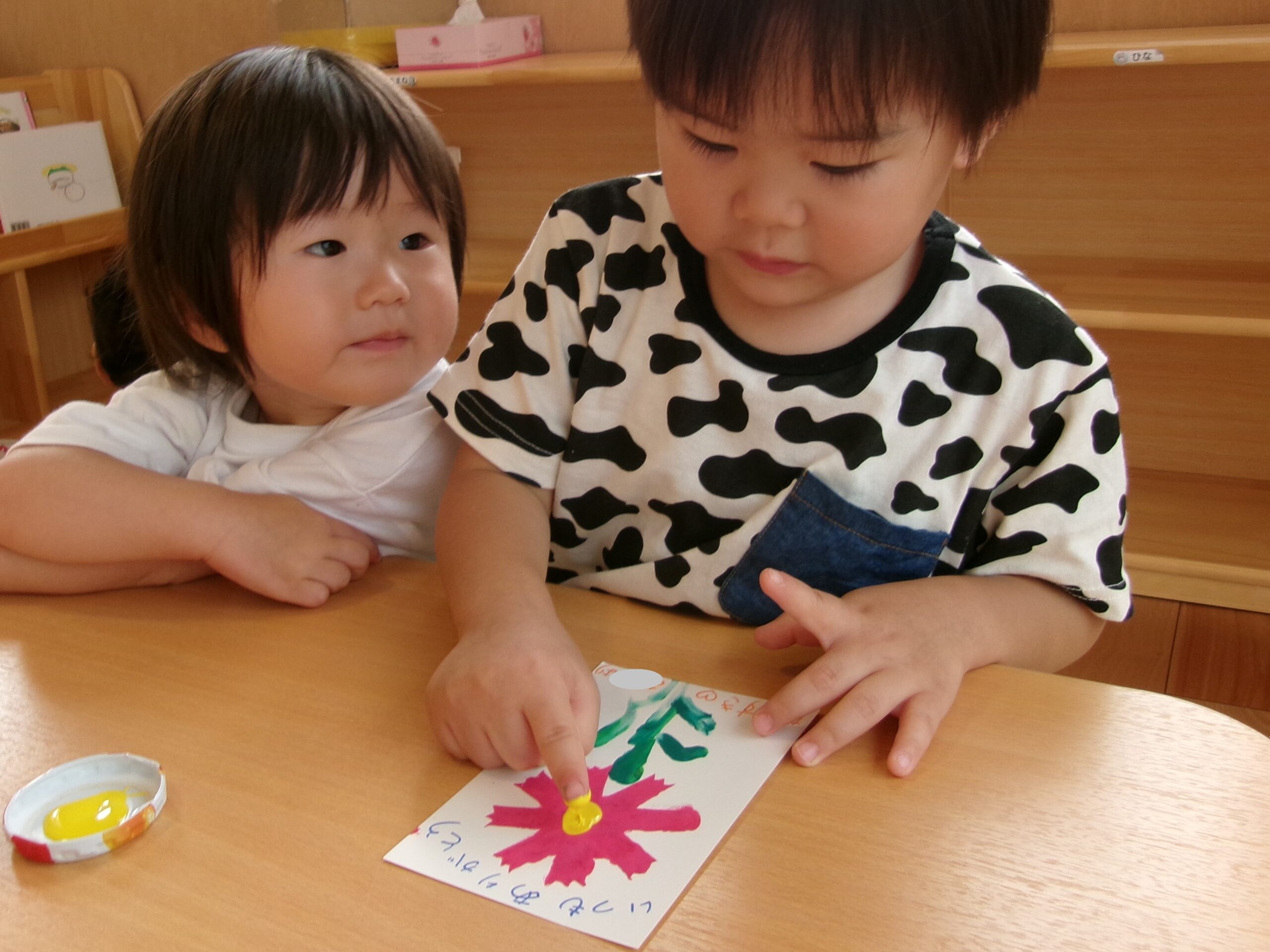 にじ組さん(2歳児)とひかり組さん(1歳児)はコスモス🌷 ゆめ組さん(0歳児)はぶどう🍇