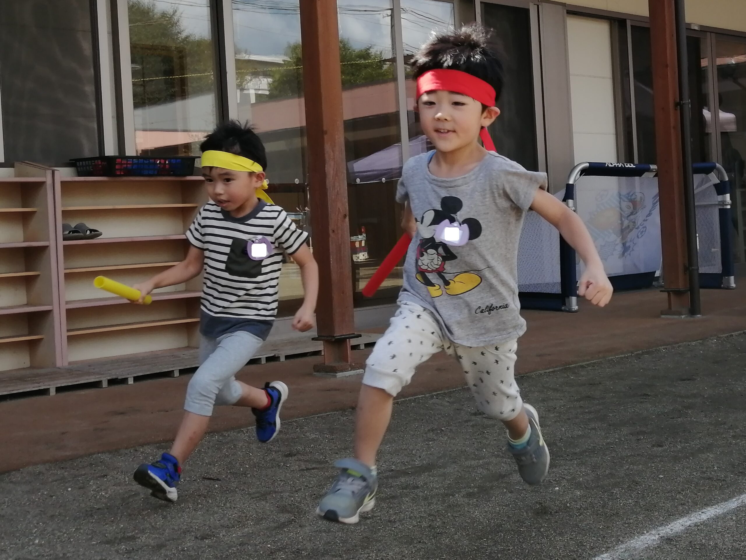 ひまわり組さん(5歳児)のリレーは、今ままでない接戦でとても白熱!!