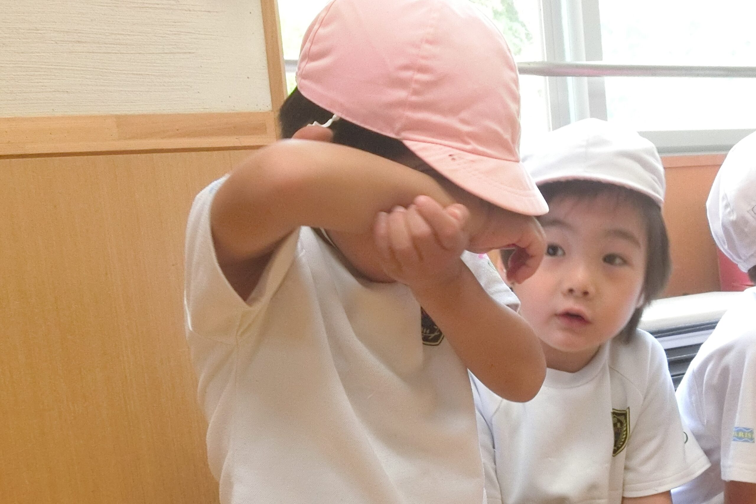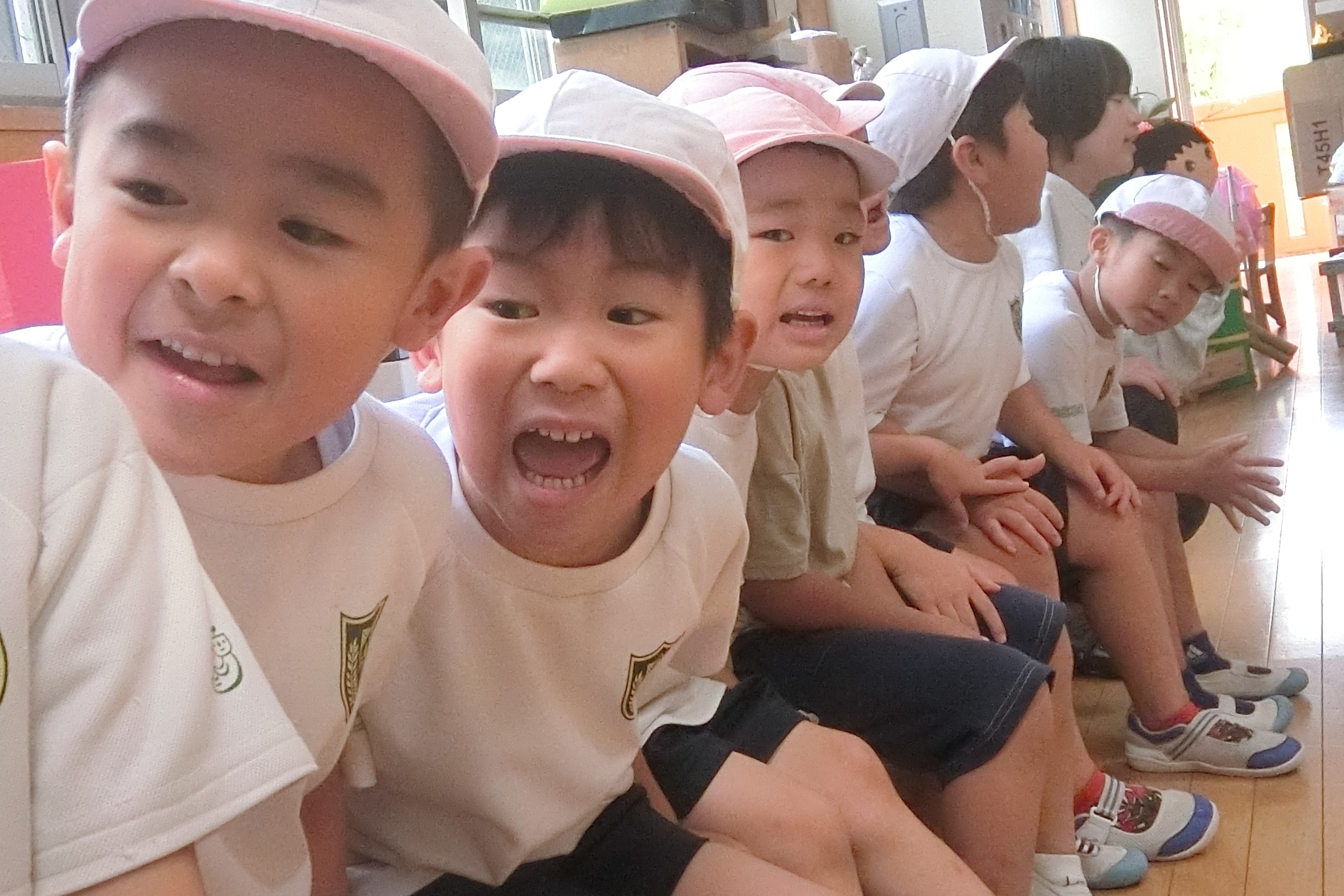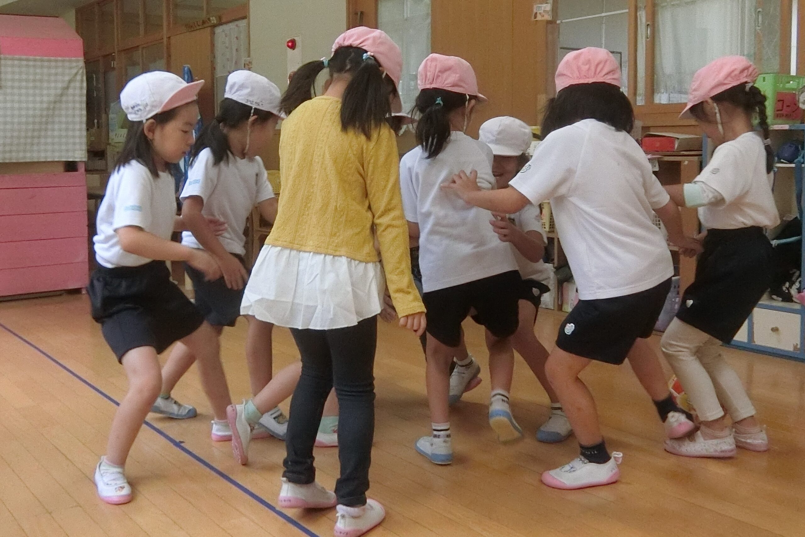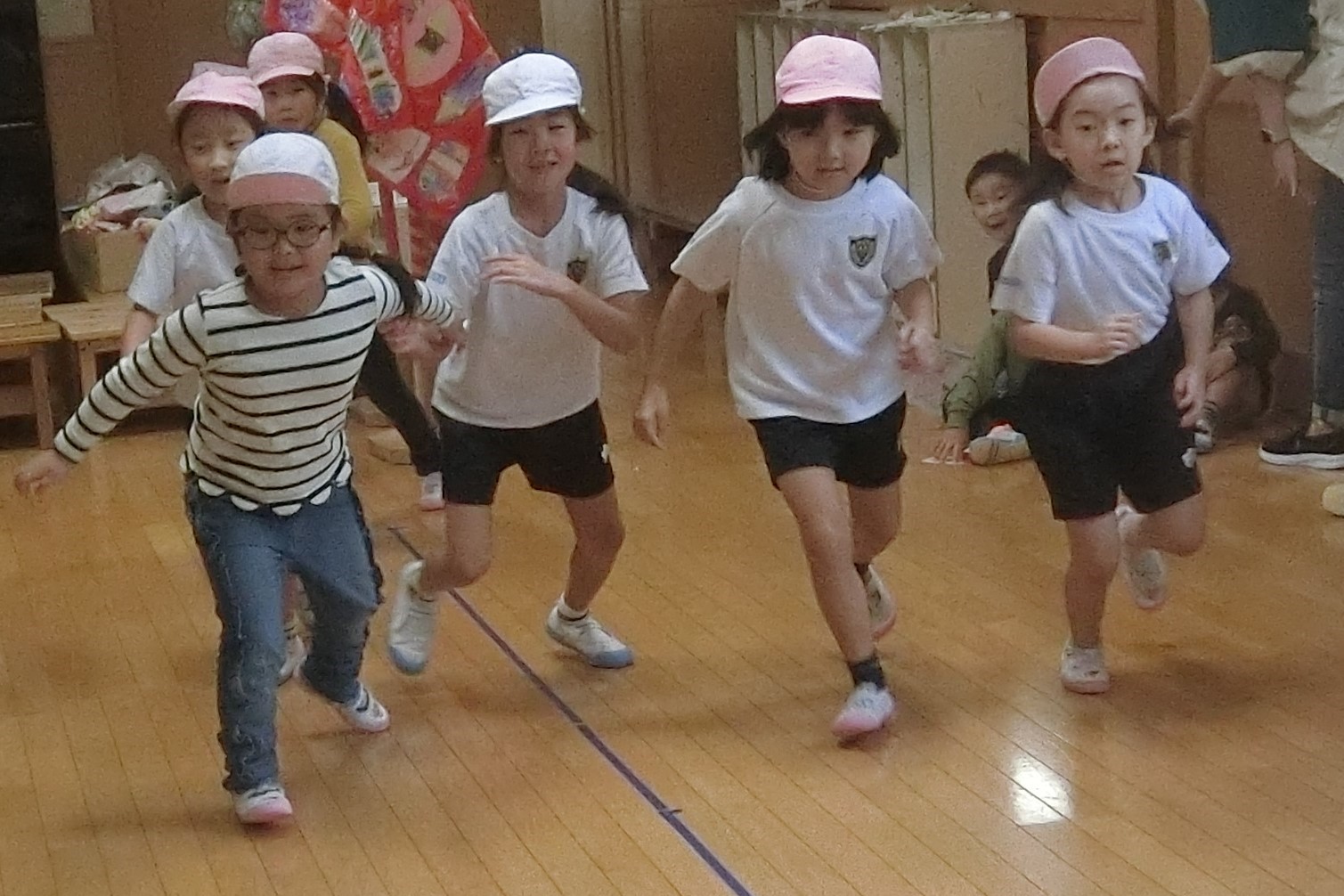 たいよう組さん(5歳児)の雨で中止になってしまったサッカー教室。 どうしてもやりたくてみんなで室内で対決!