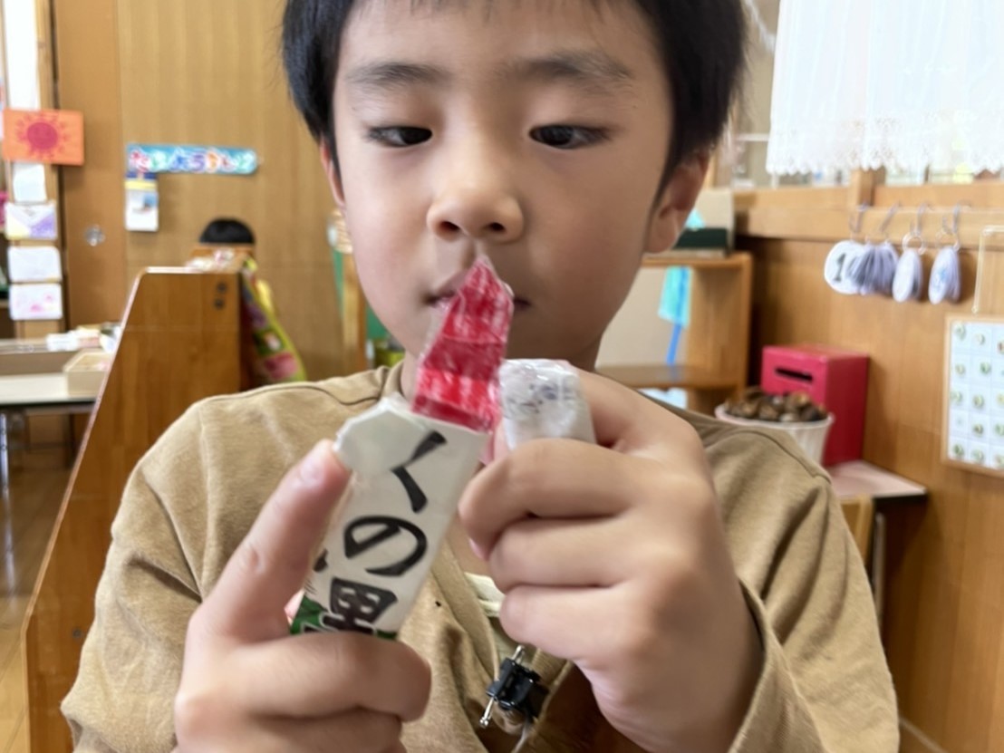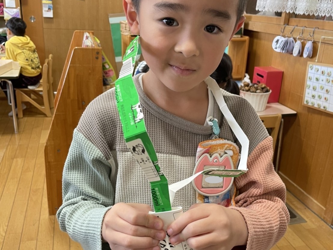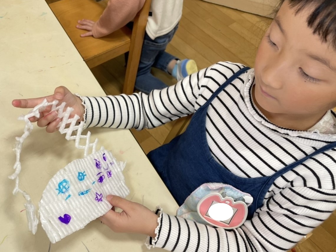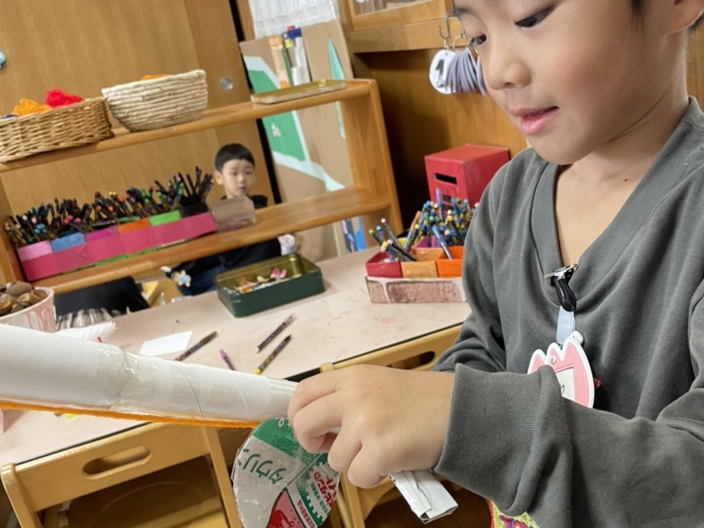 たいよう組さん(5歳児)では多彩な材料を工夫しての工作が広がっています。