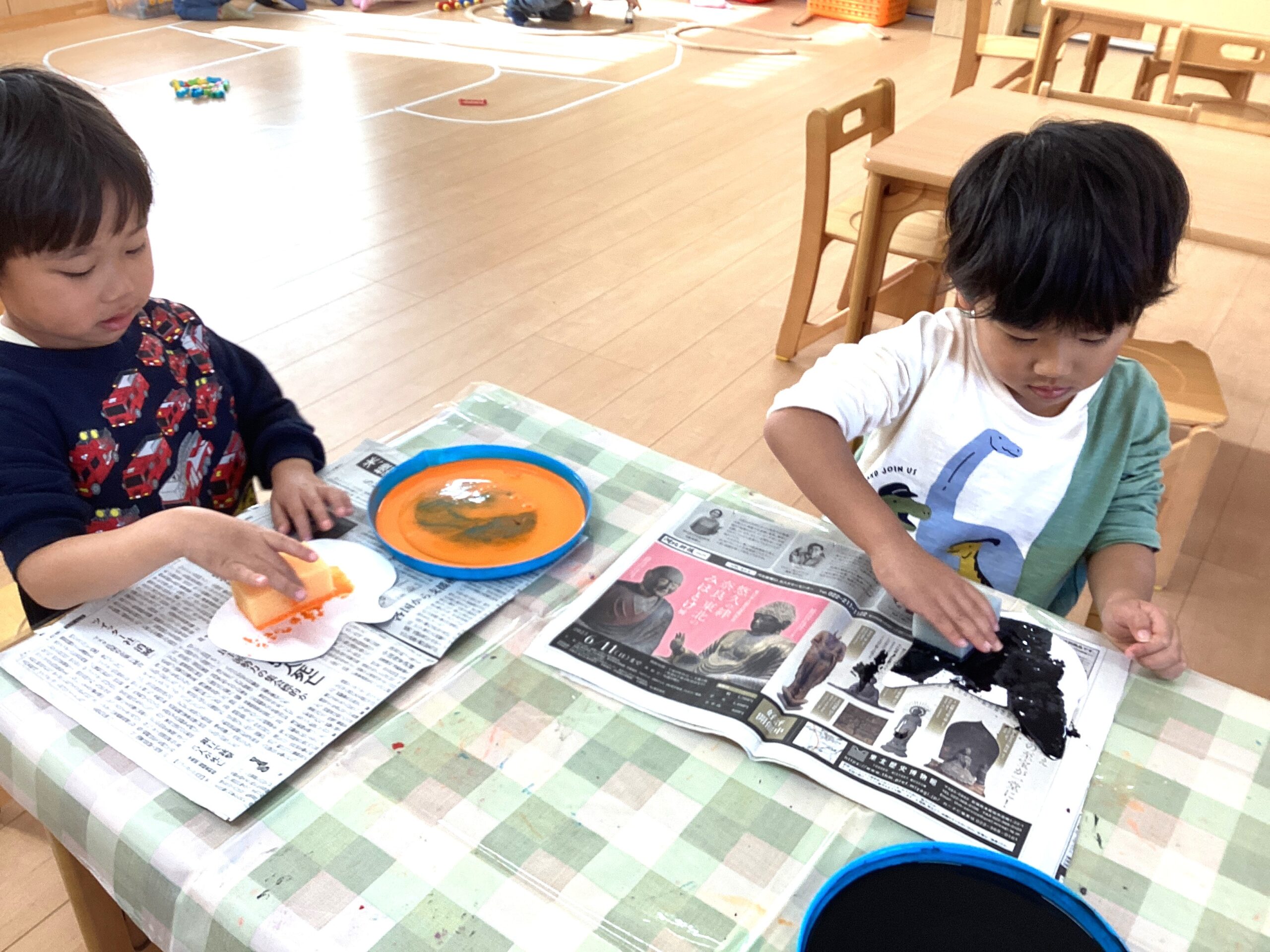 ばら組さん(3歳児)がハロウィンの制作をしました🎃