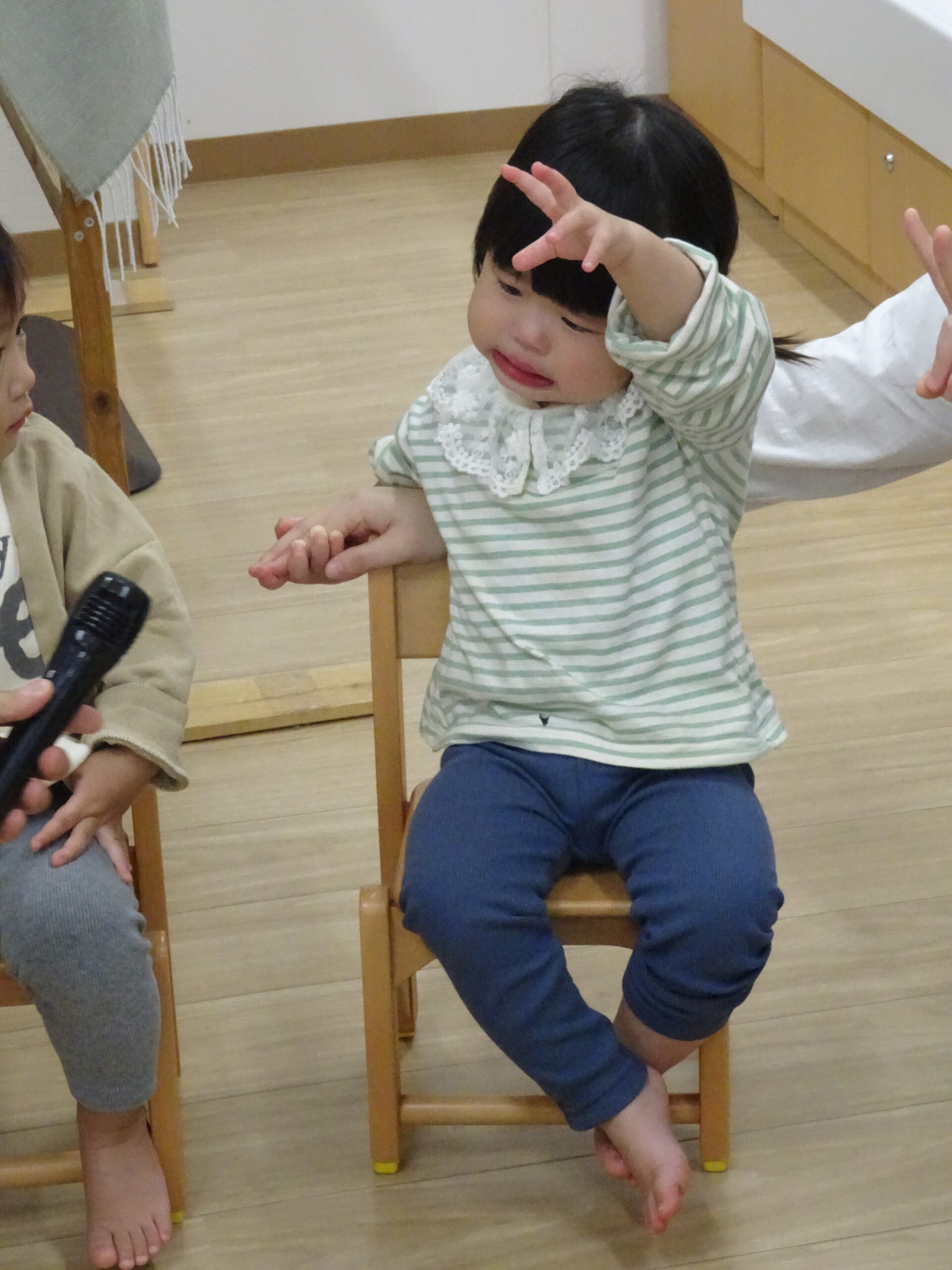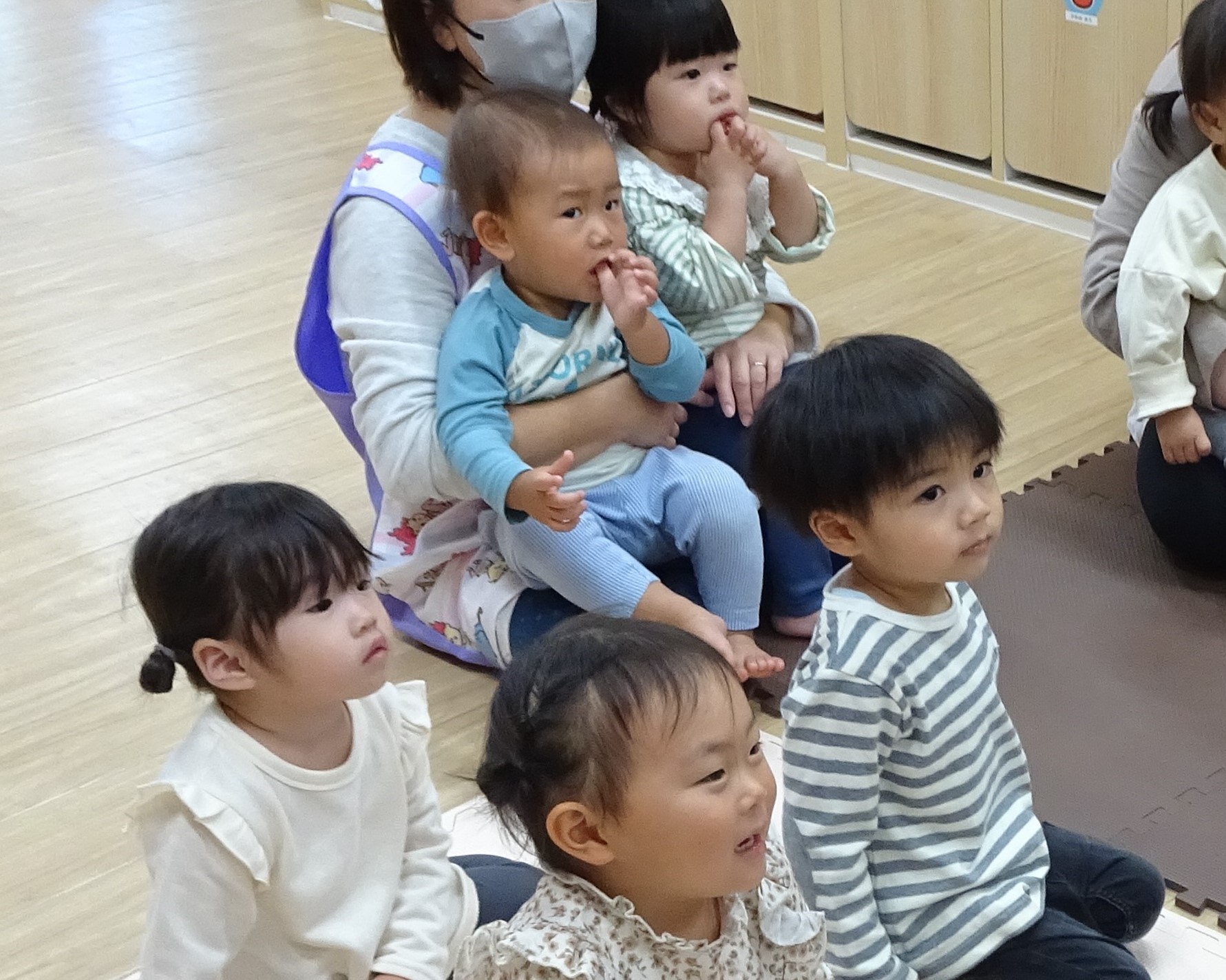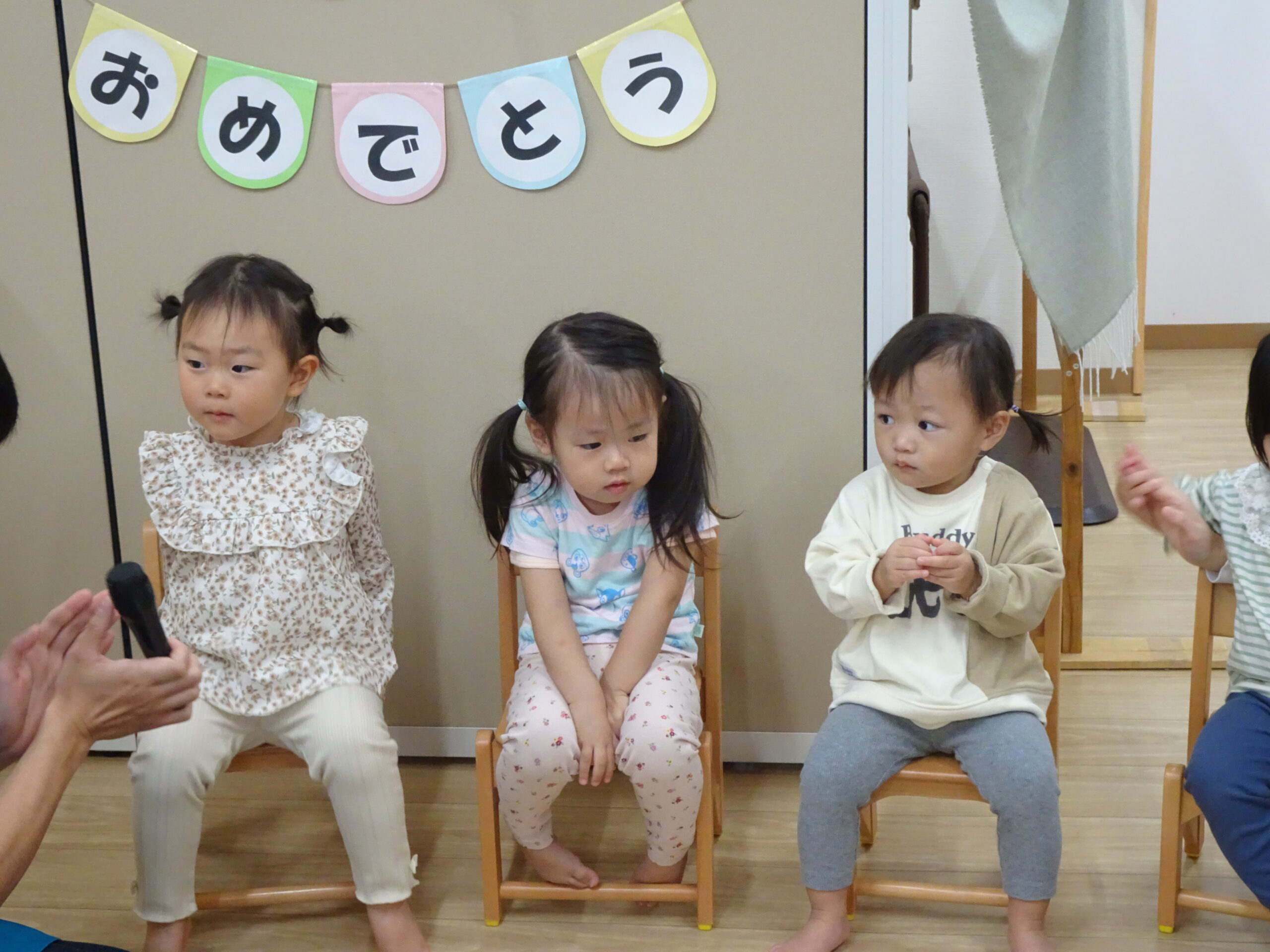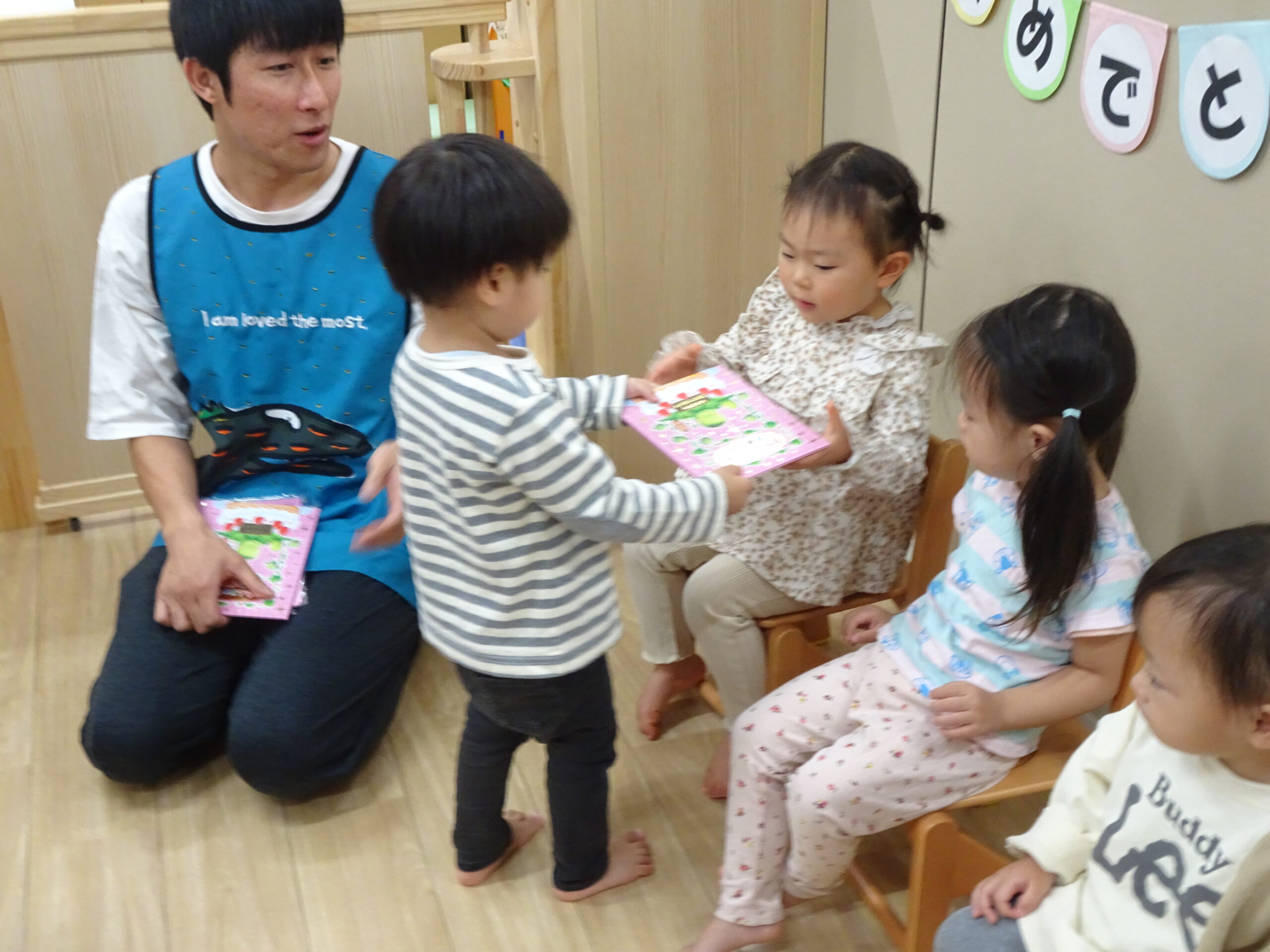 10月生まれのお誕生会がありました!お名前を呼ばれると…、「は~い」とお返事! お友だちから、カードをプレゼントしてもらいました♪