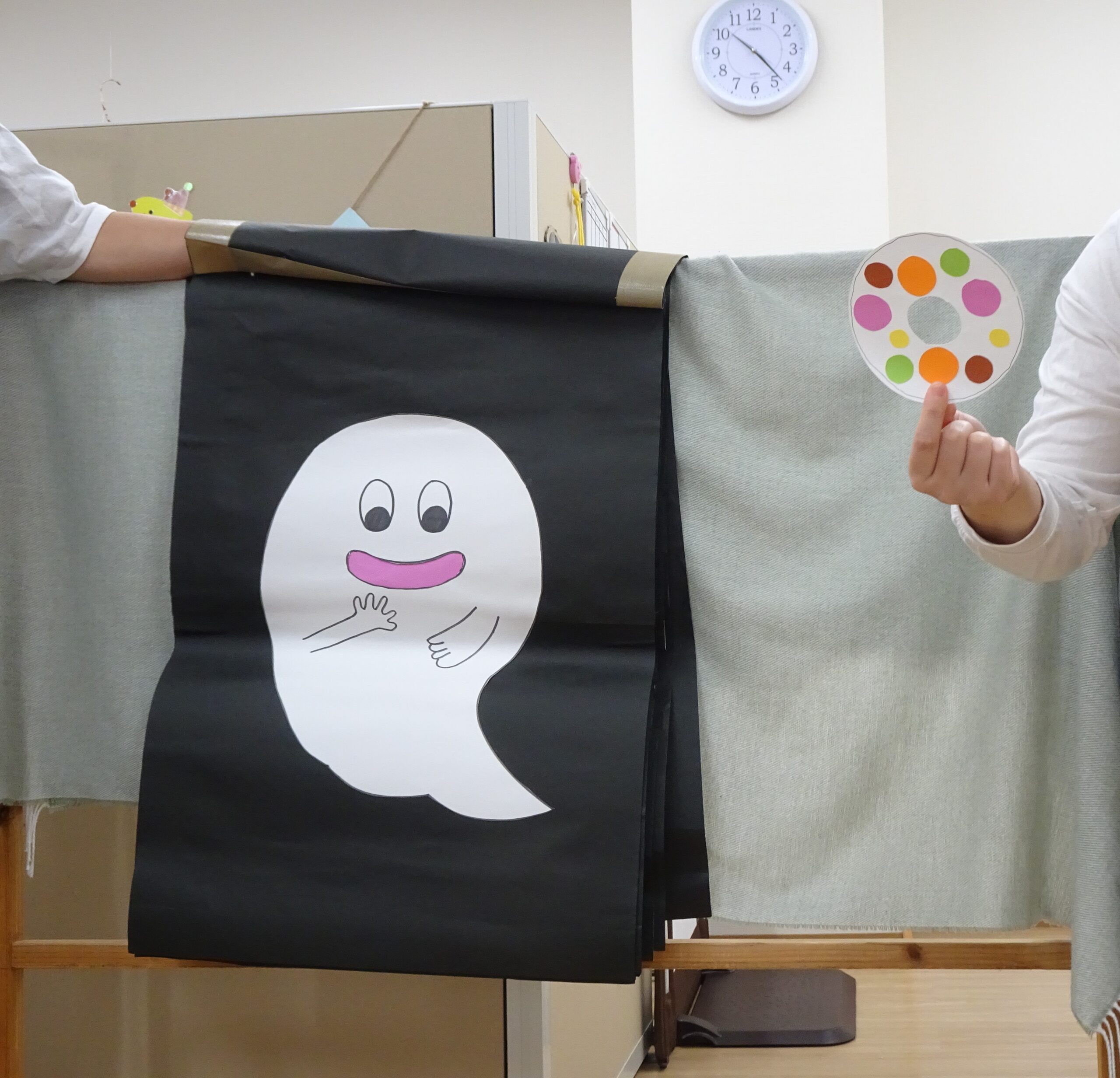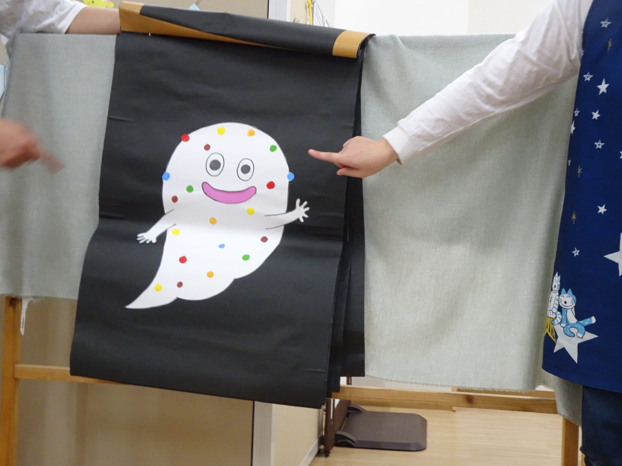 先生たちからは、‟ばけ ばけ ばけ ばけ ばけたくん”のお話をプレゼント。