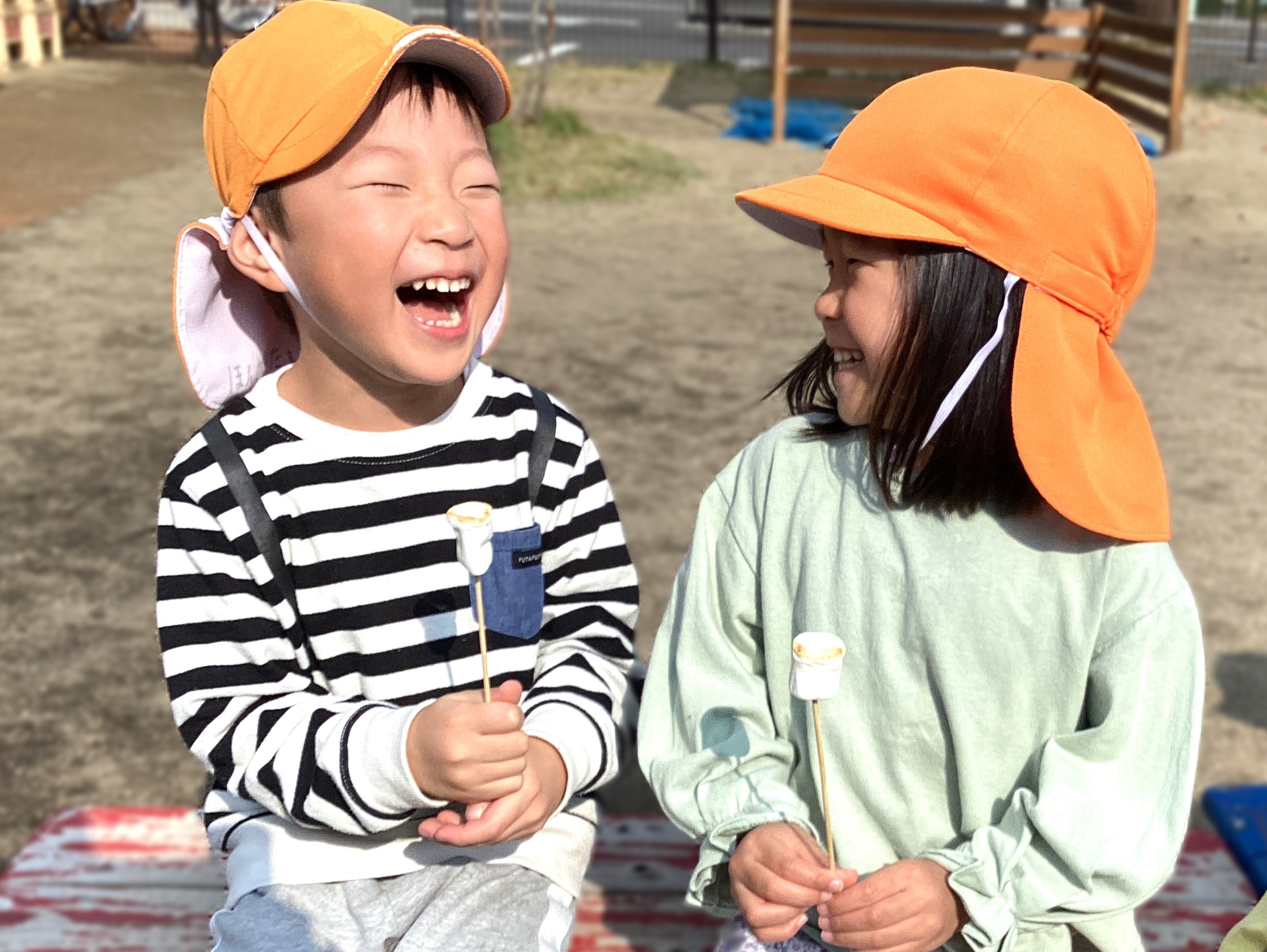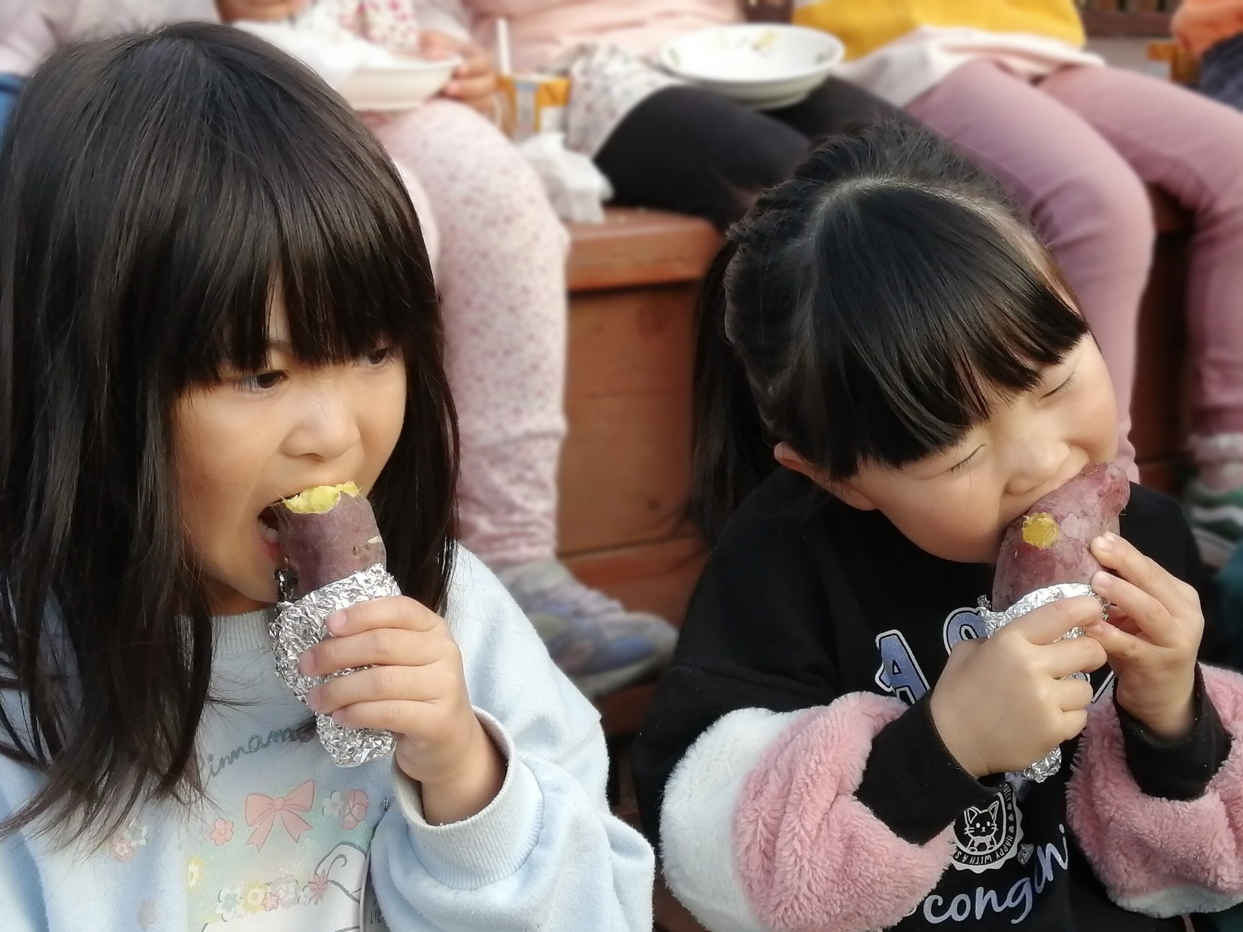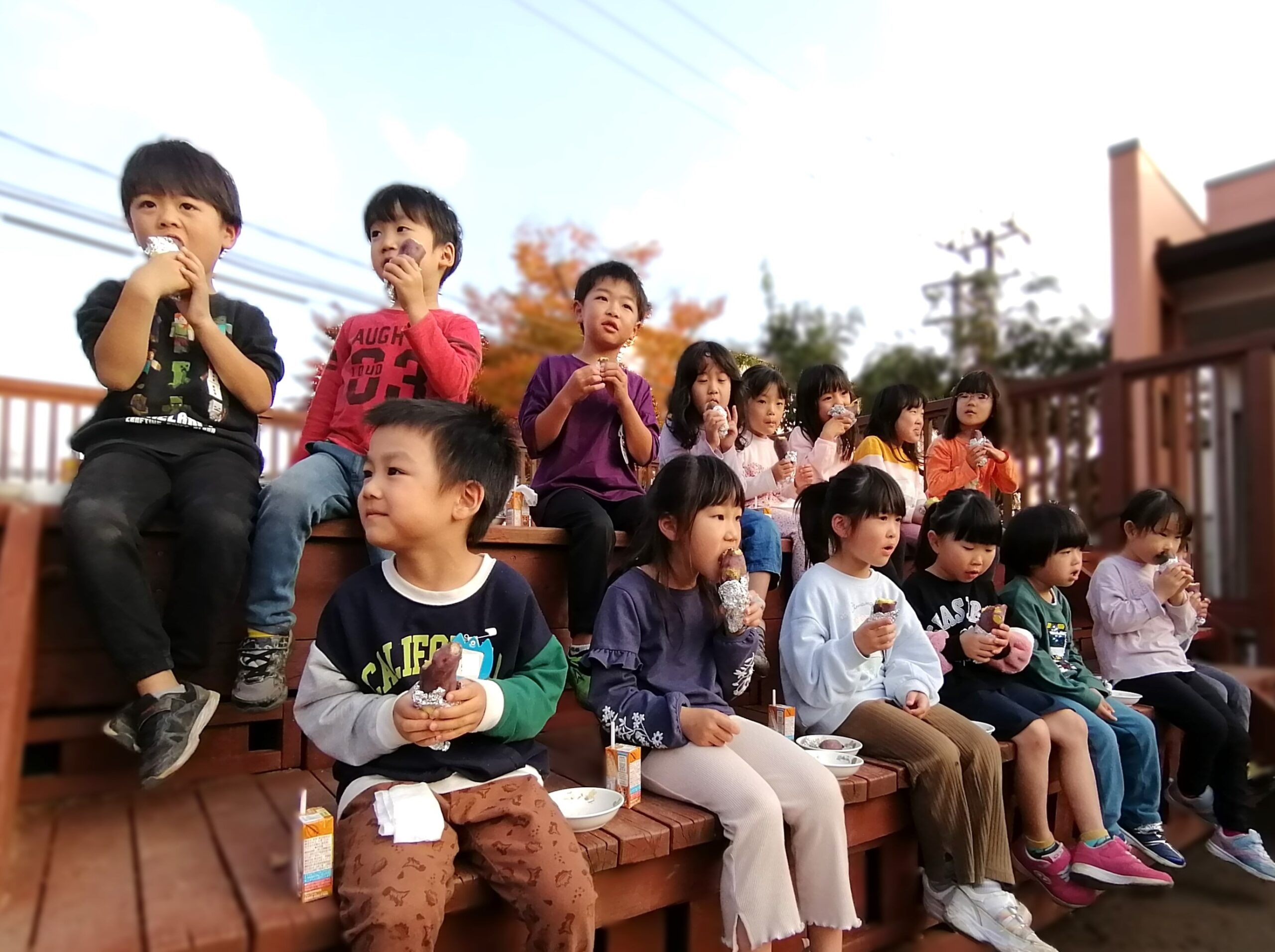 そして待ちに待った時間が来ました!! 園庭のデッキに上がって「いただきま~す🍠」