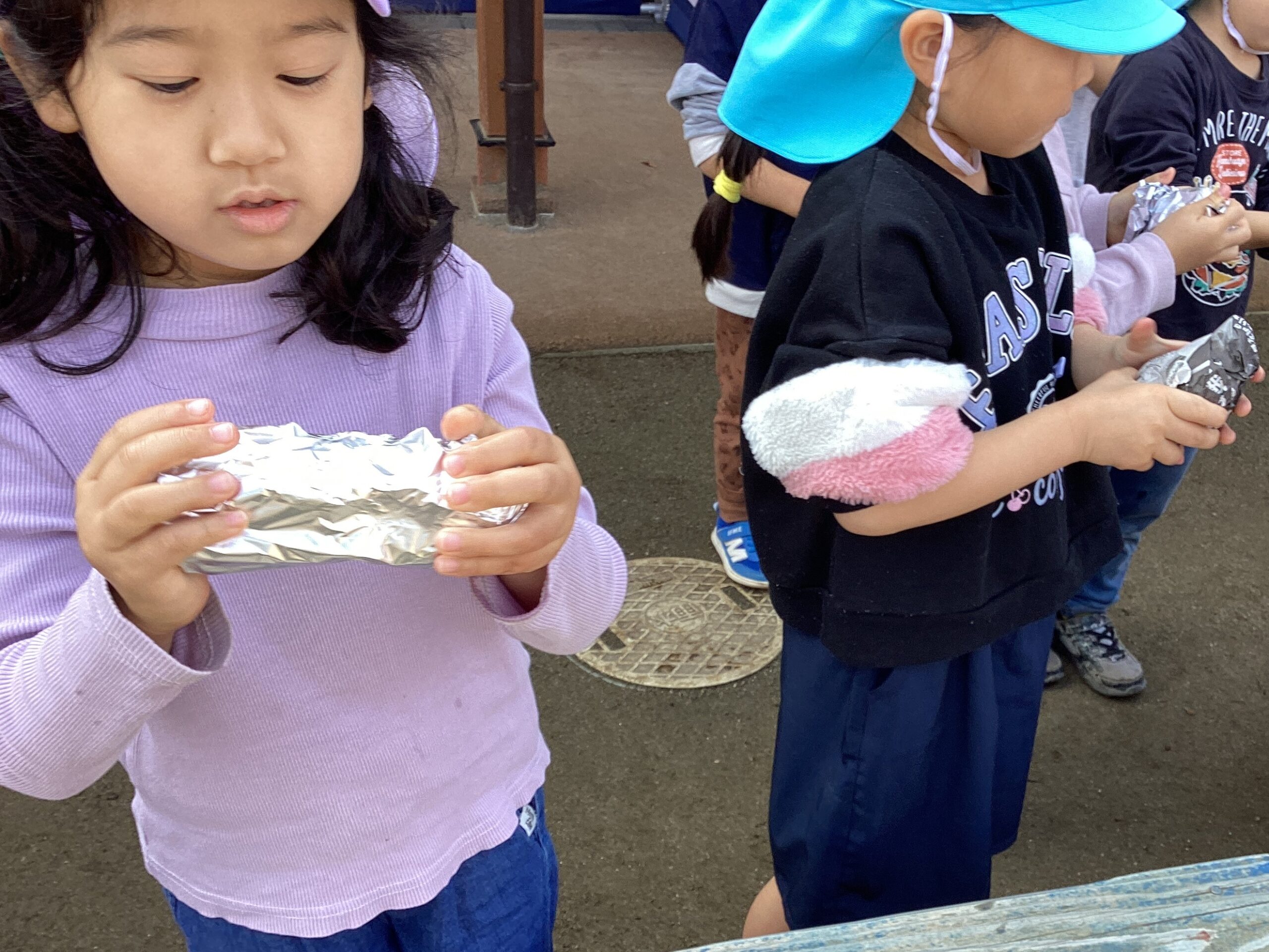 ひまわり組が採ってきたお芋を使って焼き芋パーティー!🍠