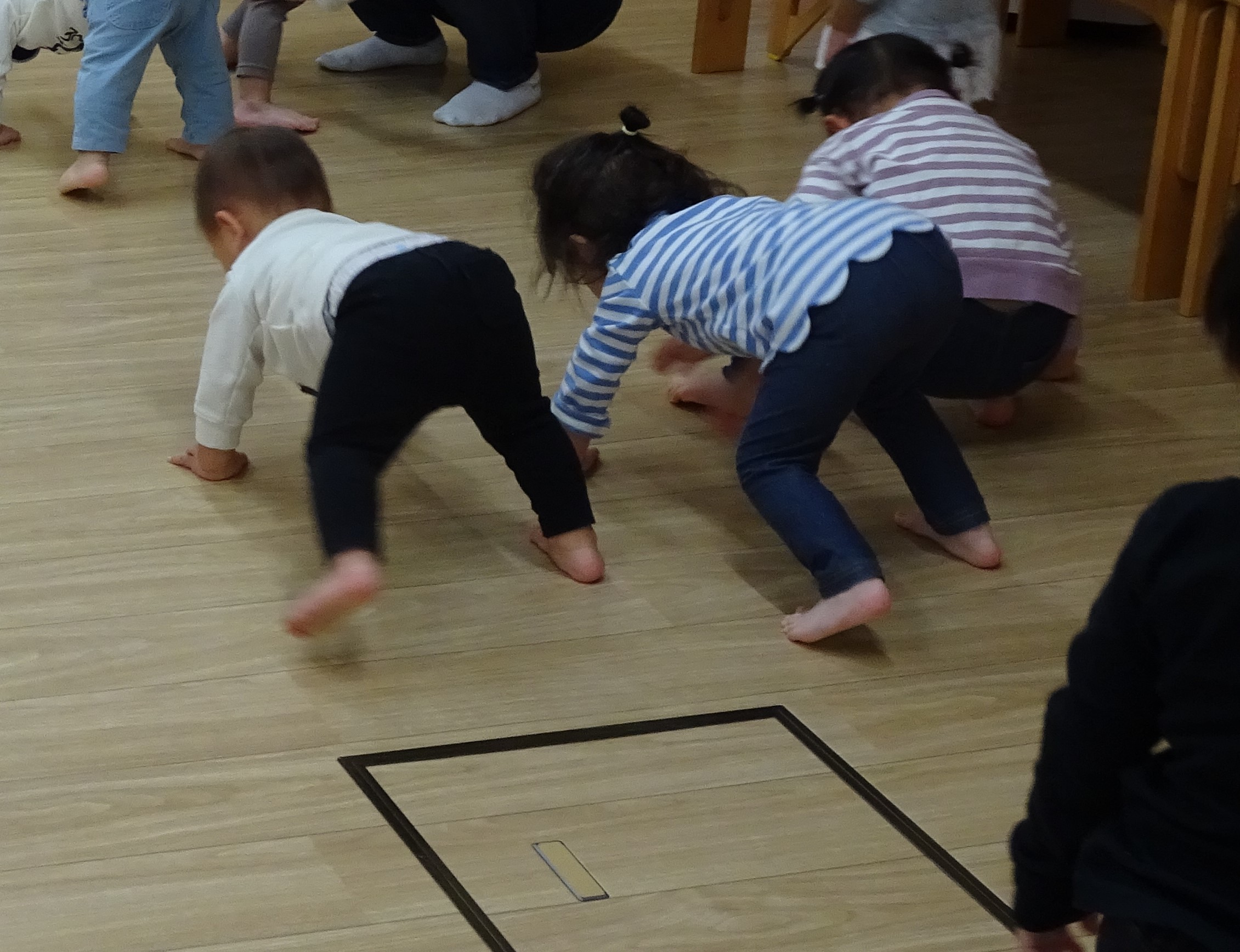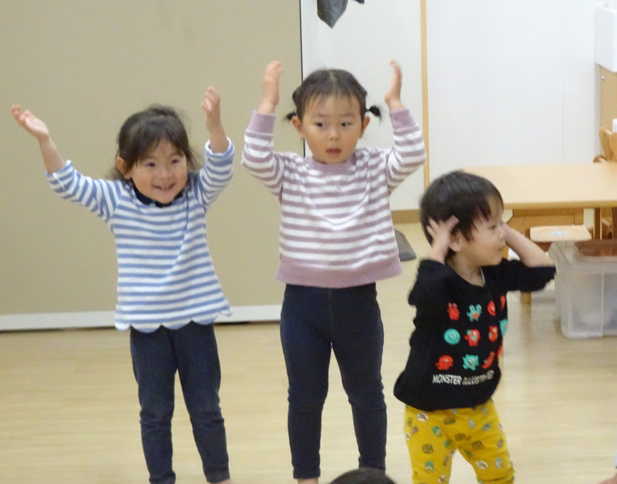 リトミック教室がありました! まずはリズムに合わせて頭をポンポン。