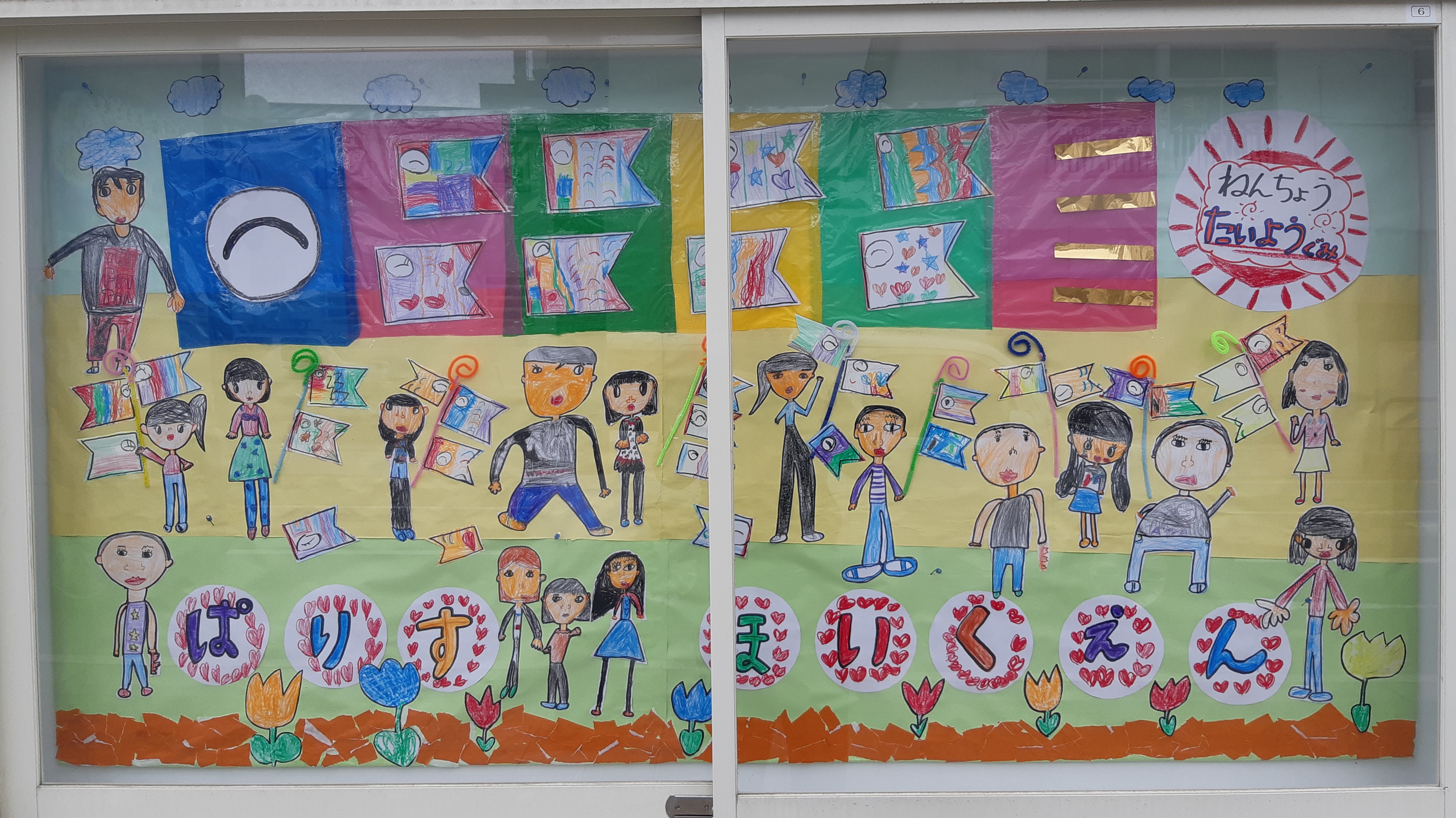 10連休を前にして街角アートが更新されました。今回のテーマはこいのぼり。年長組が例年大きなこいのぼりをつくりますが、その前に貼り絵を作りました。 こいのぼりのデザインをそれぞれに考えて、それを持ち寄ったらウロコになりました。それを見上げる自分の絵でも手にこいのぼりを持っています。年長に進級したこの時期にの持ち寄り合作。みんなでつくると大きなものが出来るという経験を通して、仲間関係がしっかりしてきます。