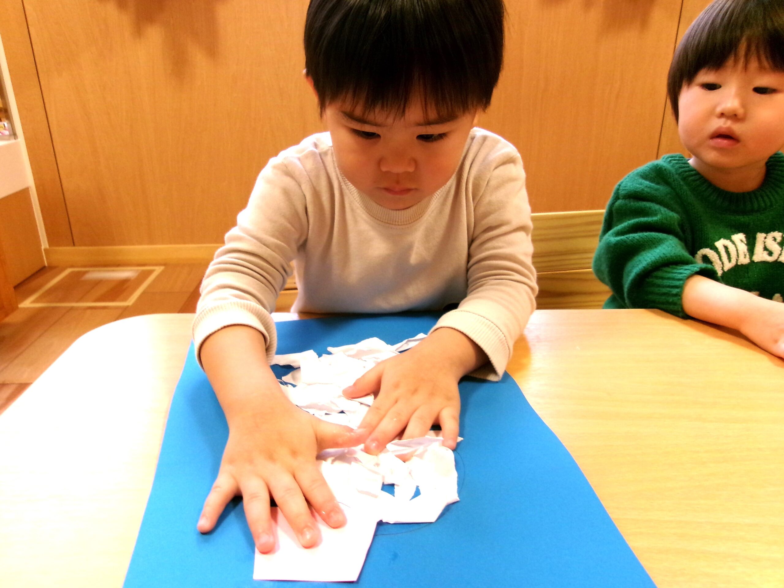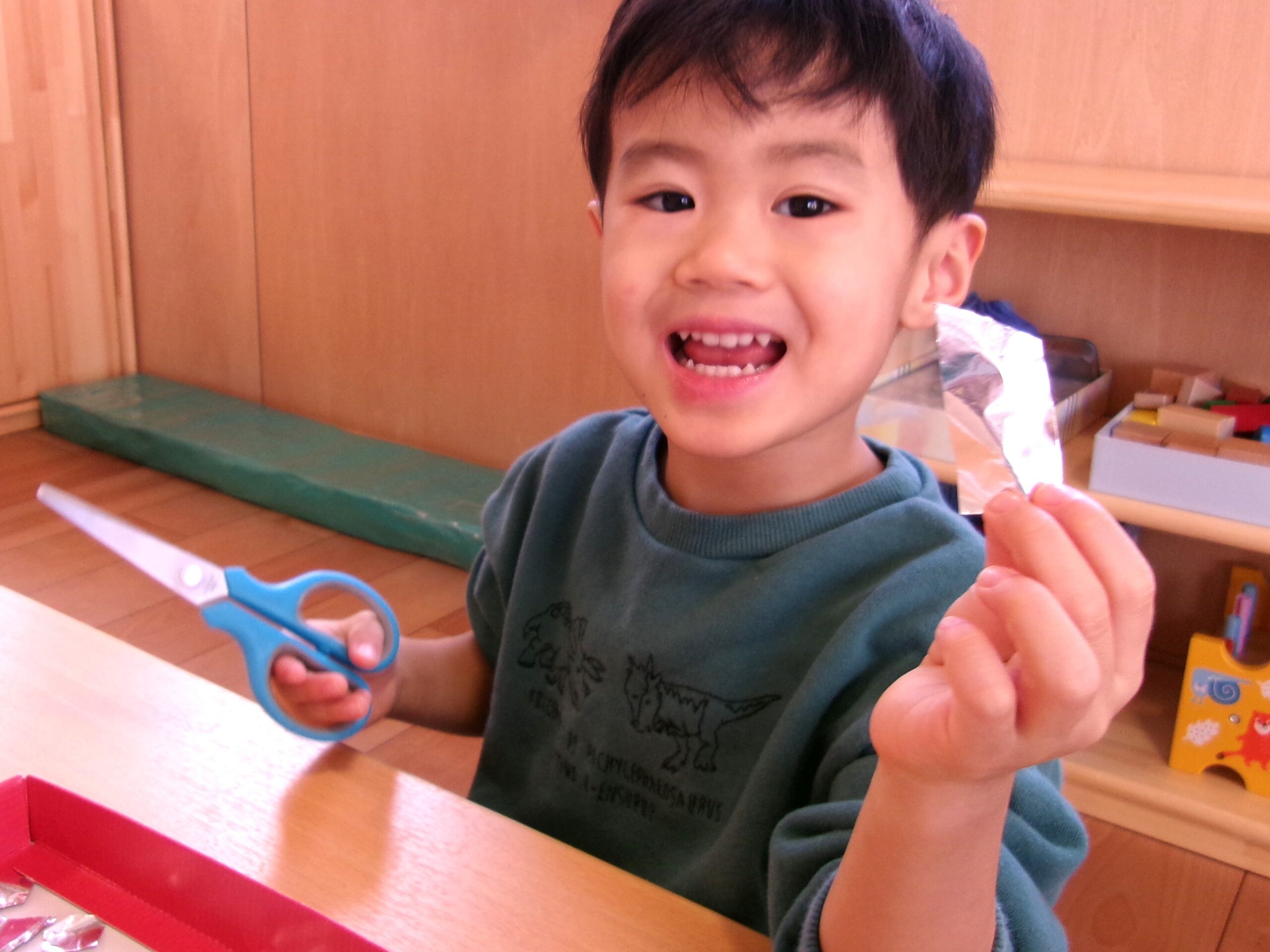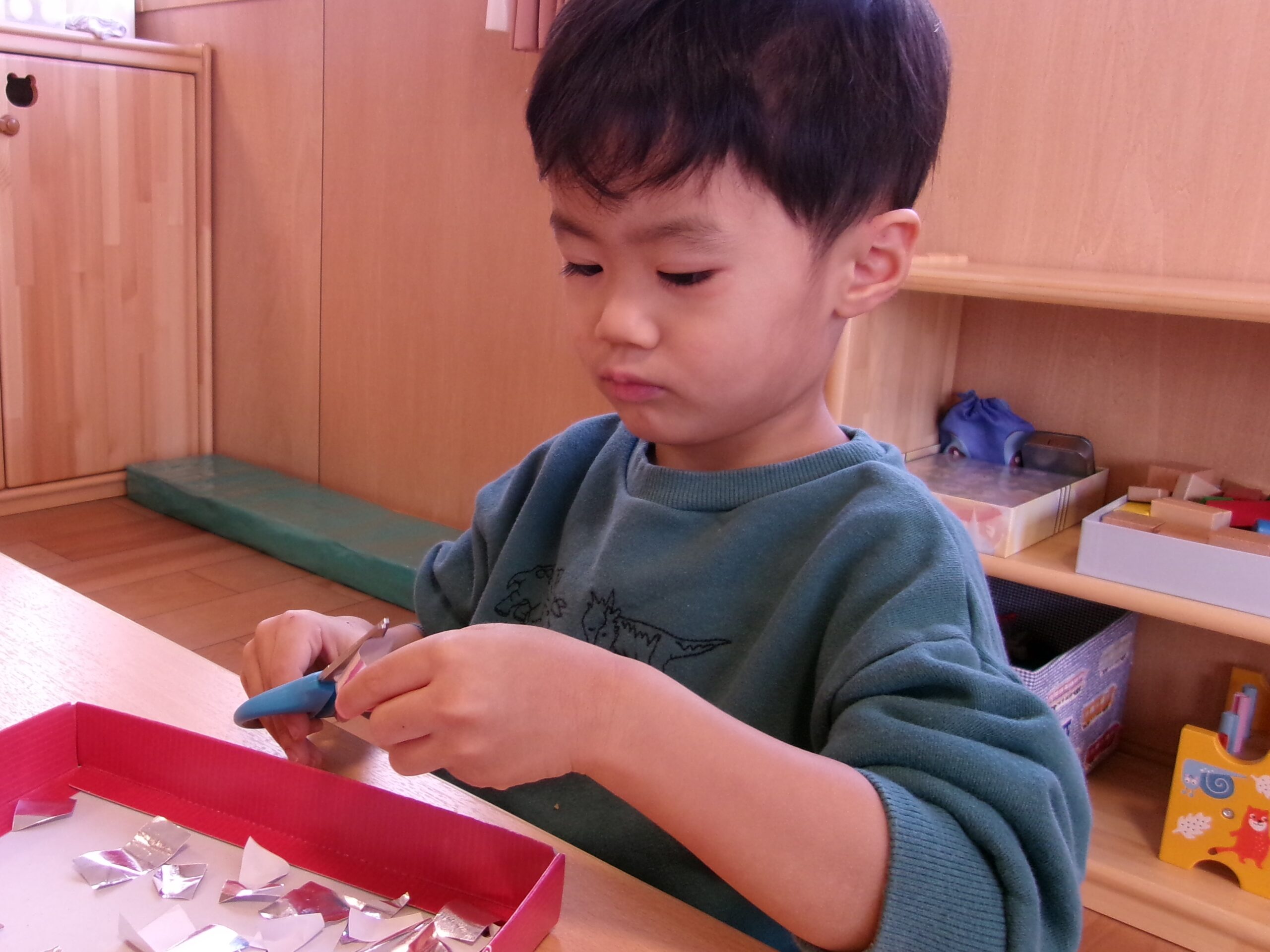 ハサミでチョキンは始めての体験!✂ 「ちょっぴり難しいなぁ…」
