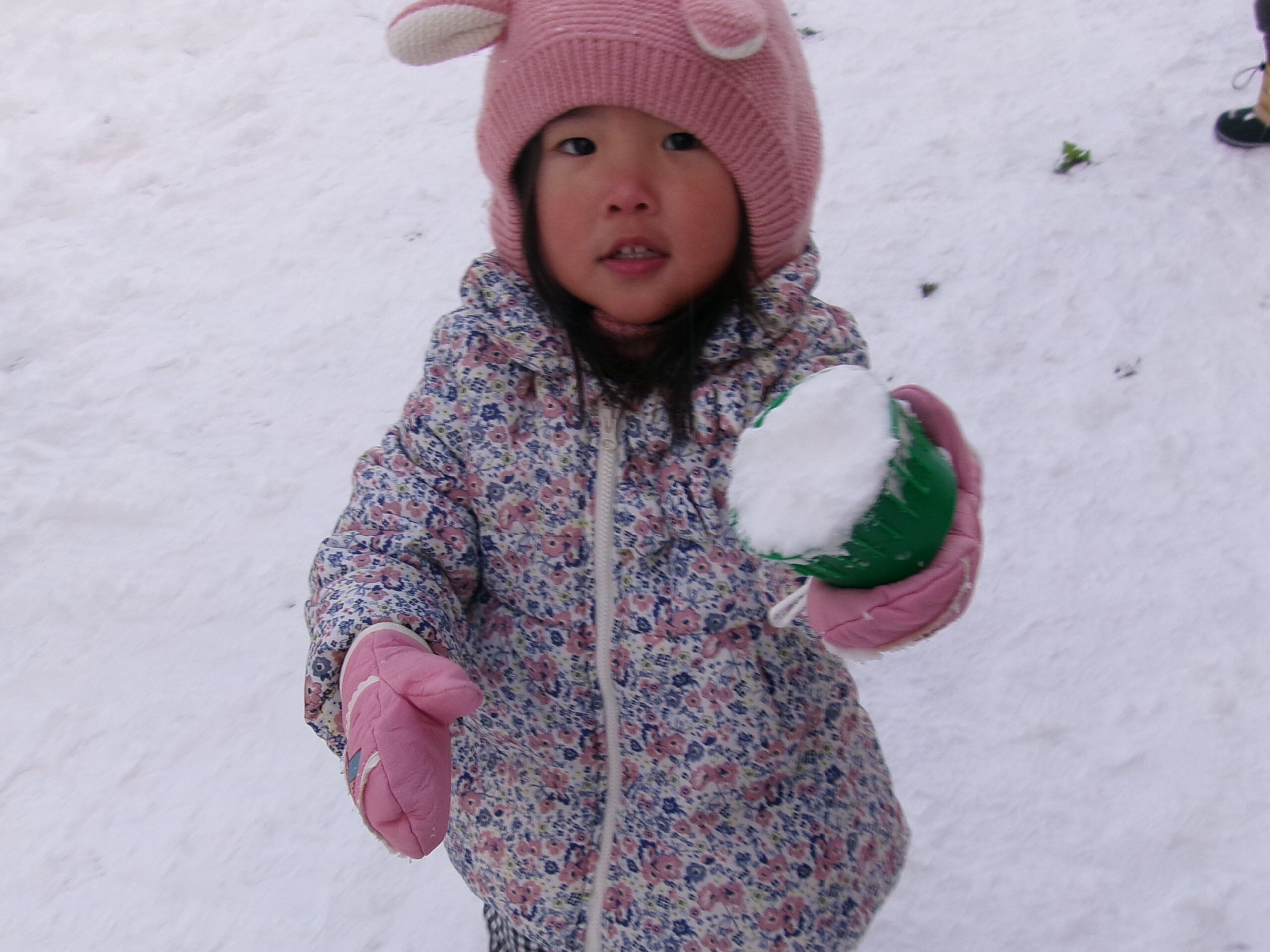 カップで雪玉作ったよ♪