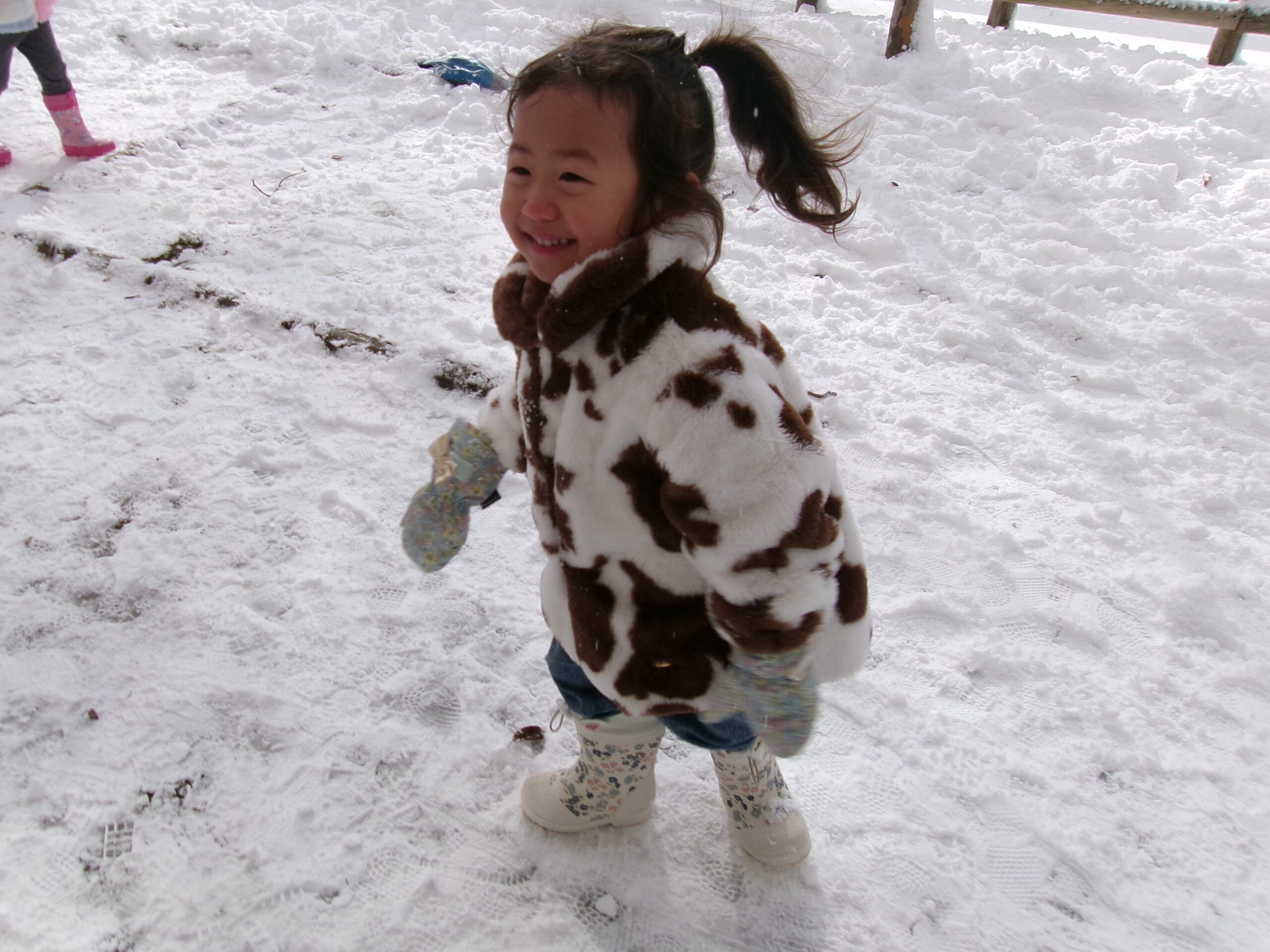 お天気がいい日はにじ組さん(2歳児)も雪遊び⛄