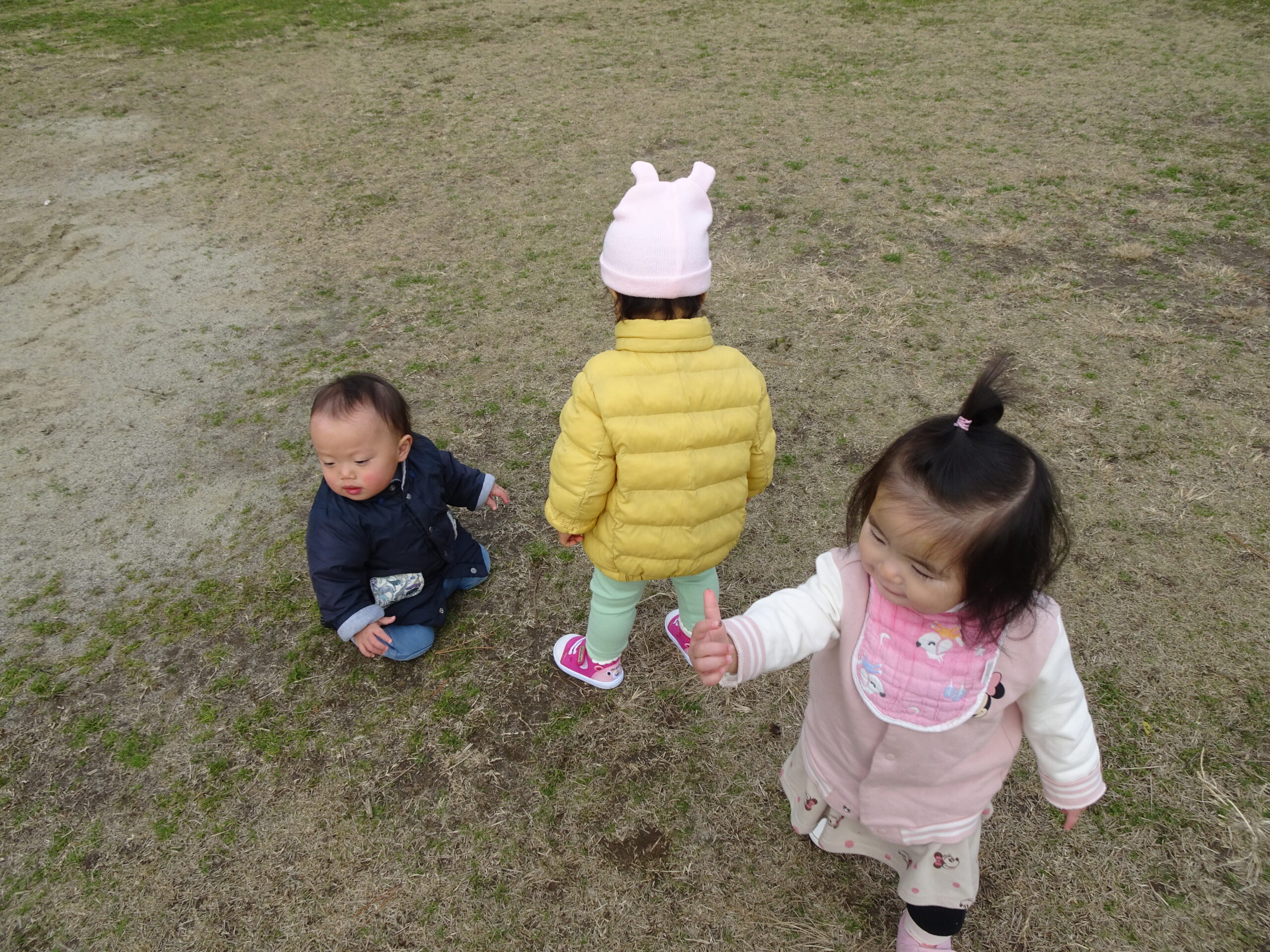 ゆめ組(0歳児)さんもあんよが上手になりました。 この黒くて大きいもの、なんだろう…? 動いてるよー。 不思議だね~。