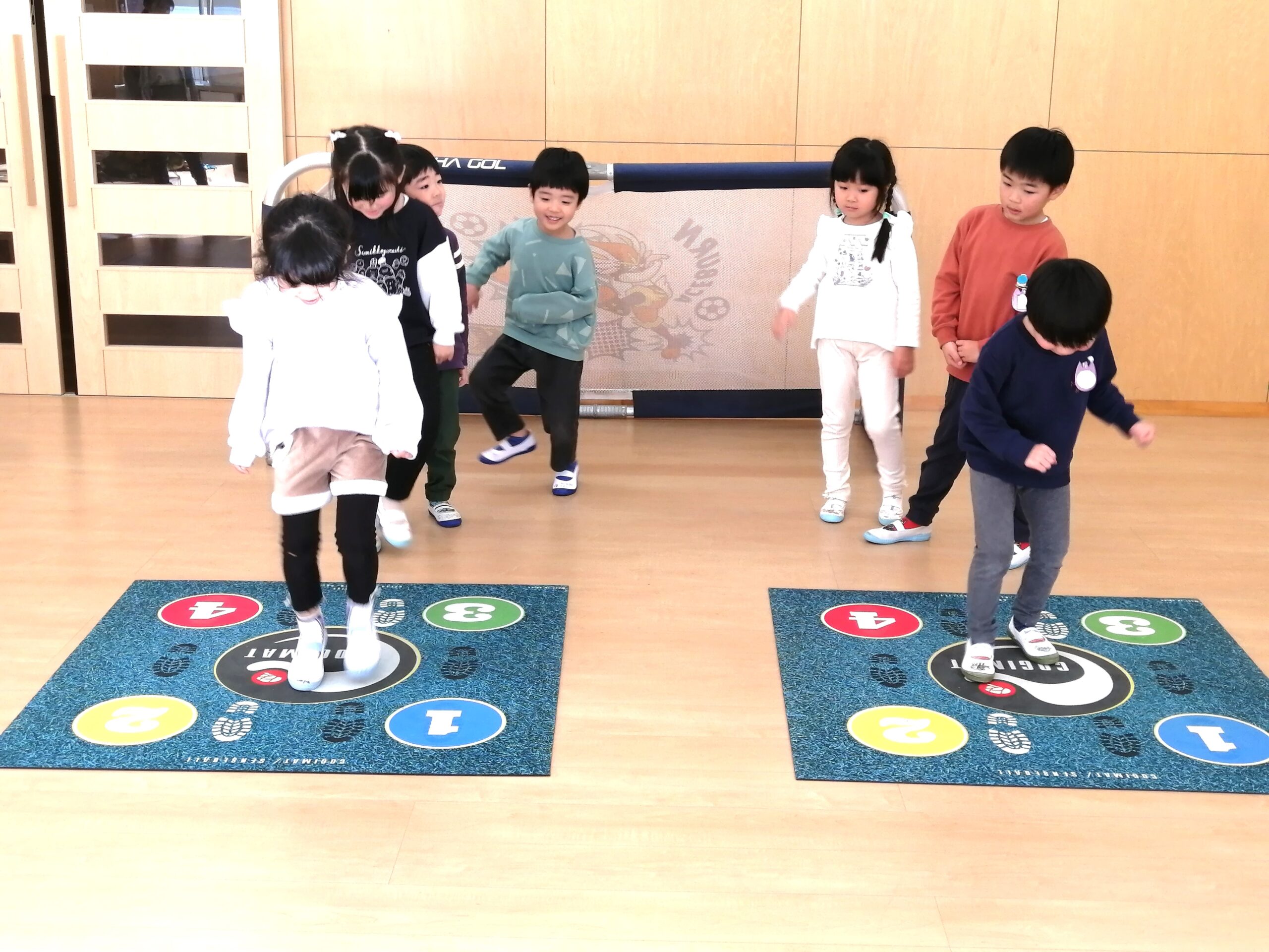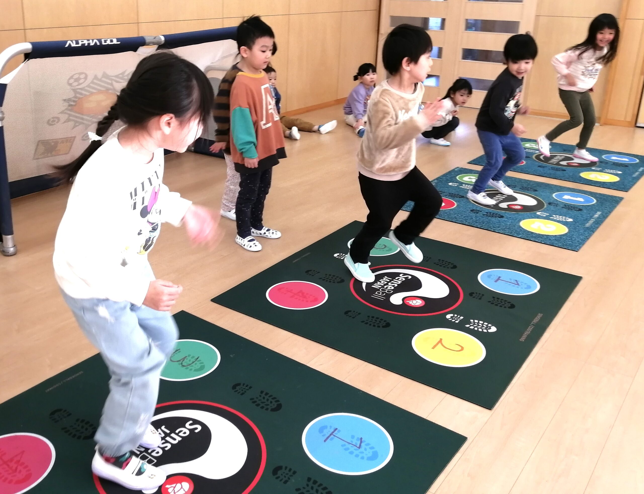 ひまわり組(4・5歳児)は、初めてコギマット(色・数字が書いたマット)を使いました!!