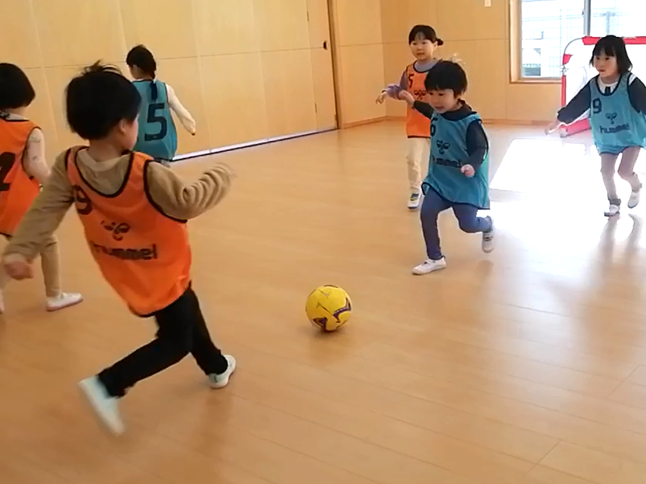 ばら組(3歳児)は、からだをほぐすために色遊びしながらのランニング🏃🔴🔵🟢🟡🟣