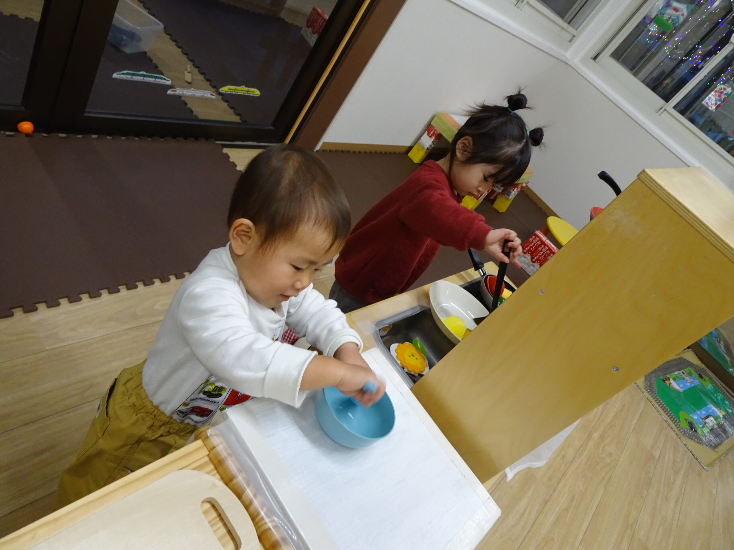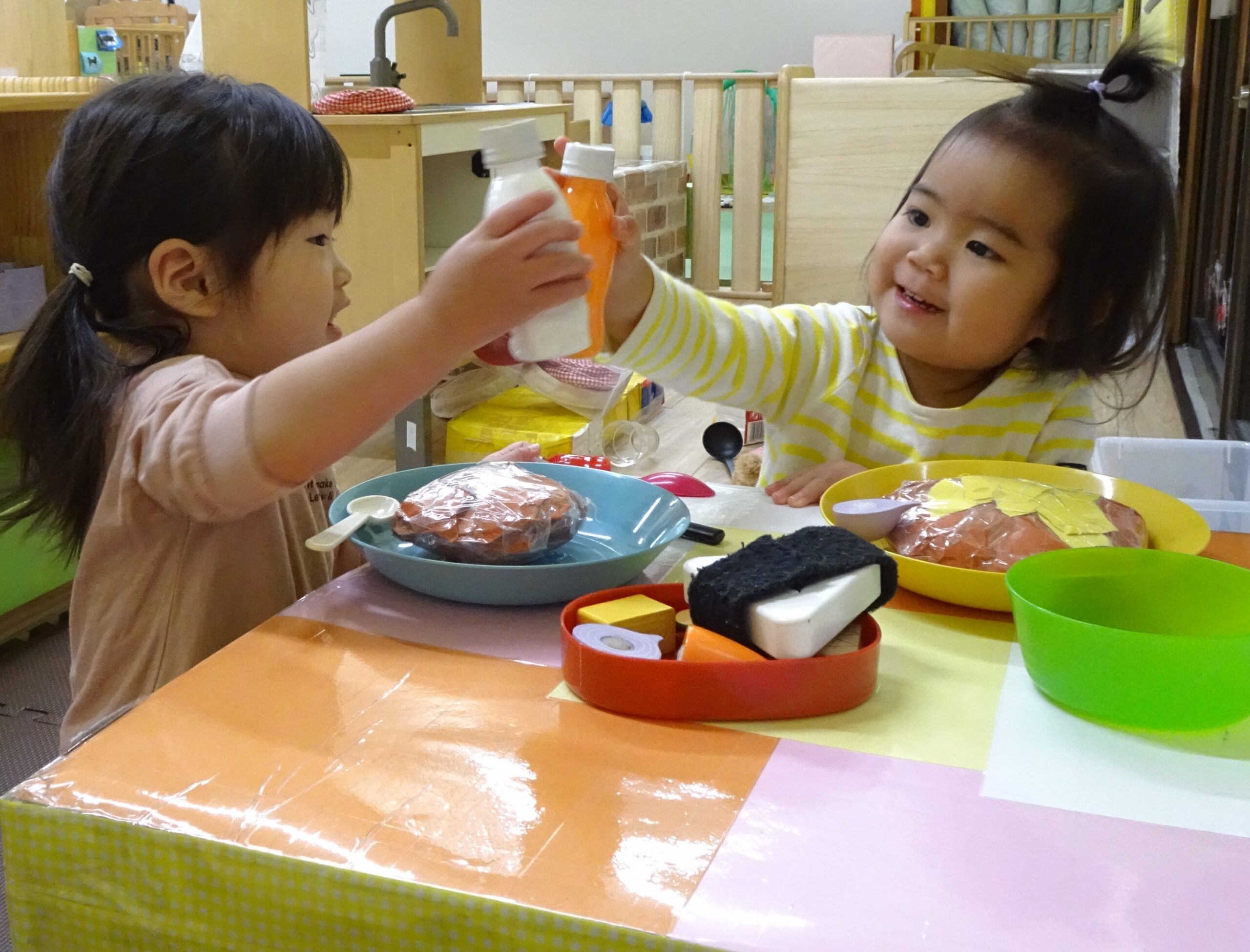 にじ組(1歳児)さんはおままごとがブーム✨ 美味しくな~れ💖