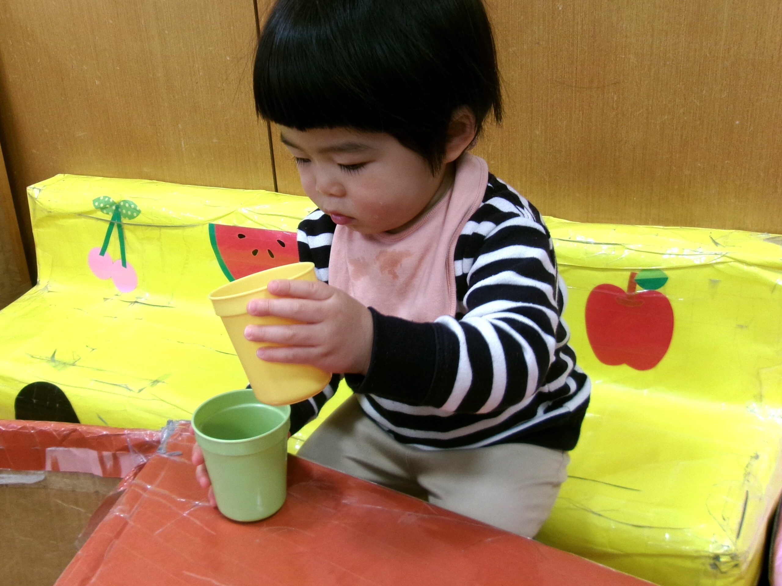 そぉっとジュースを入れて…、