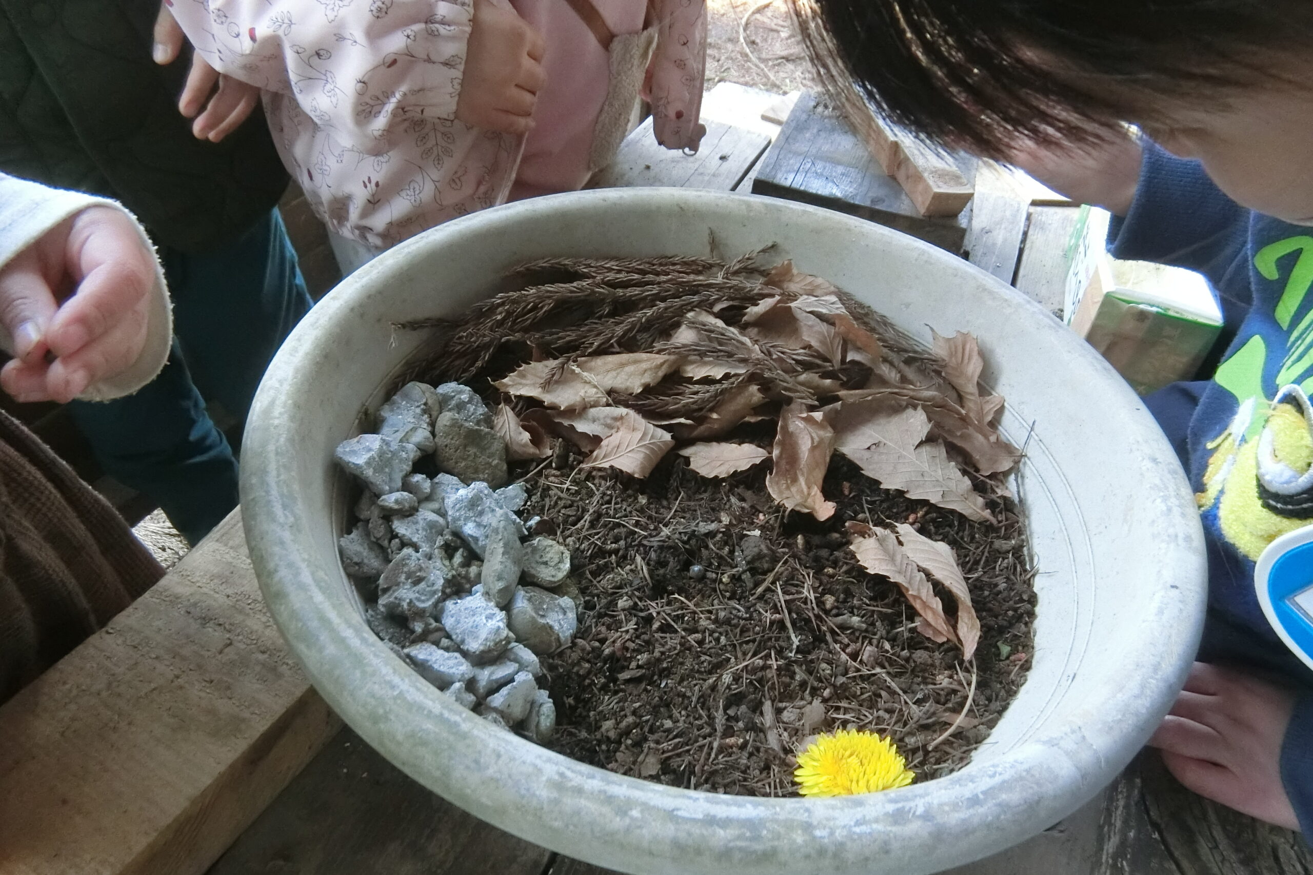 みんなもつられてホジホジホジ…。 ダンゴムシのおうち作ってみたいな。
