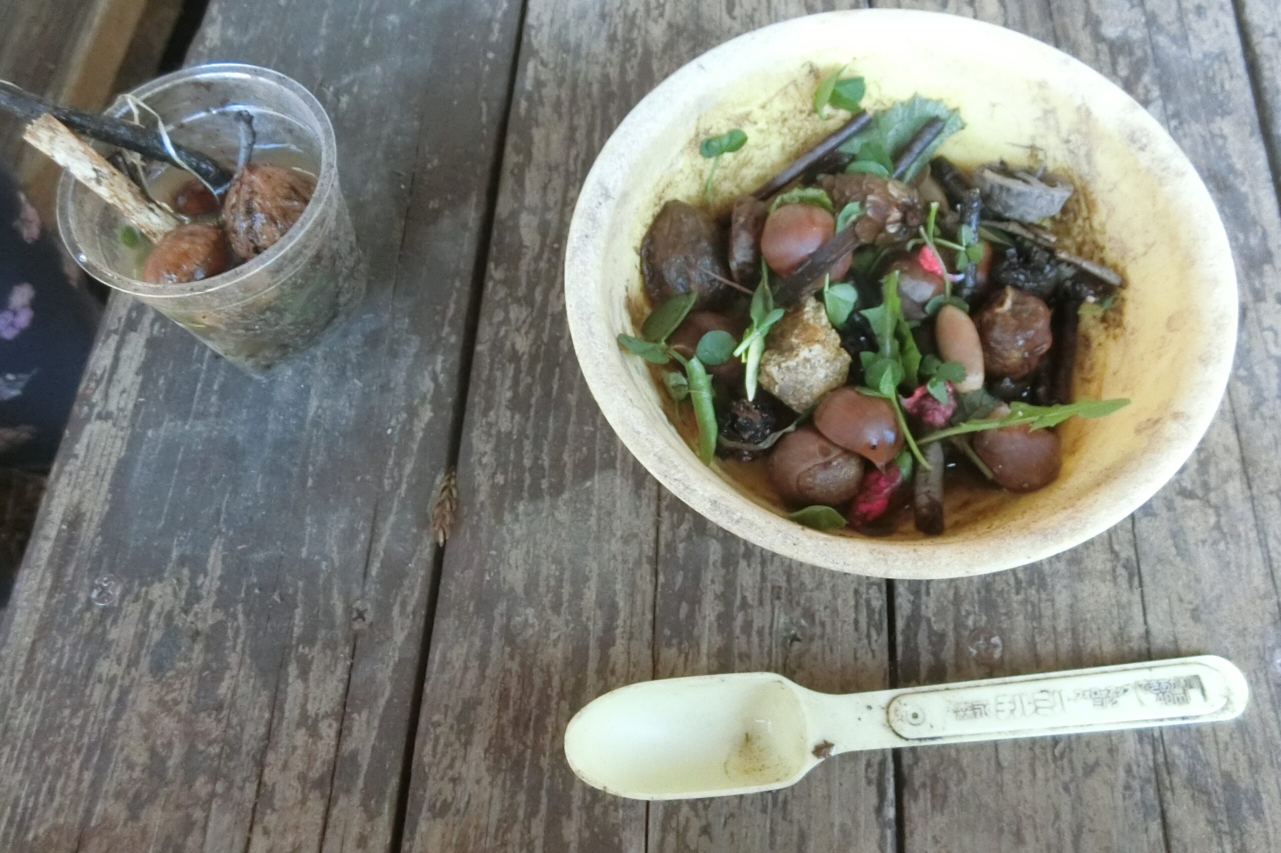 木の実と葉っぱののサラダと…、 木の実ジュースがオススメ🍃