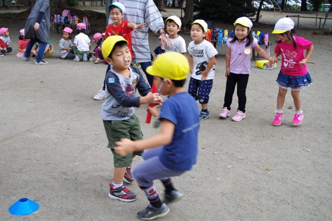 最近、以上児さんは公園に行くとリレーなどをしています。