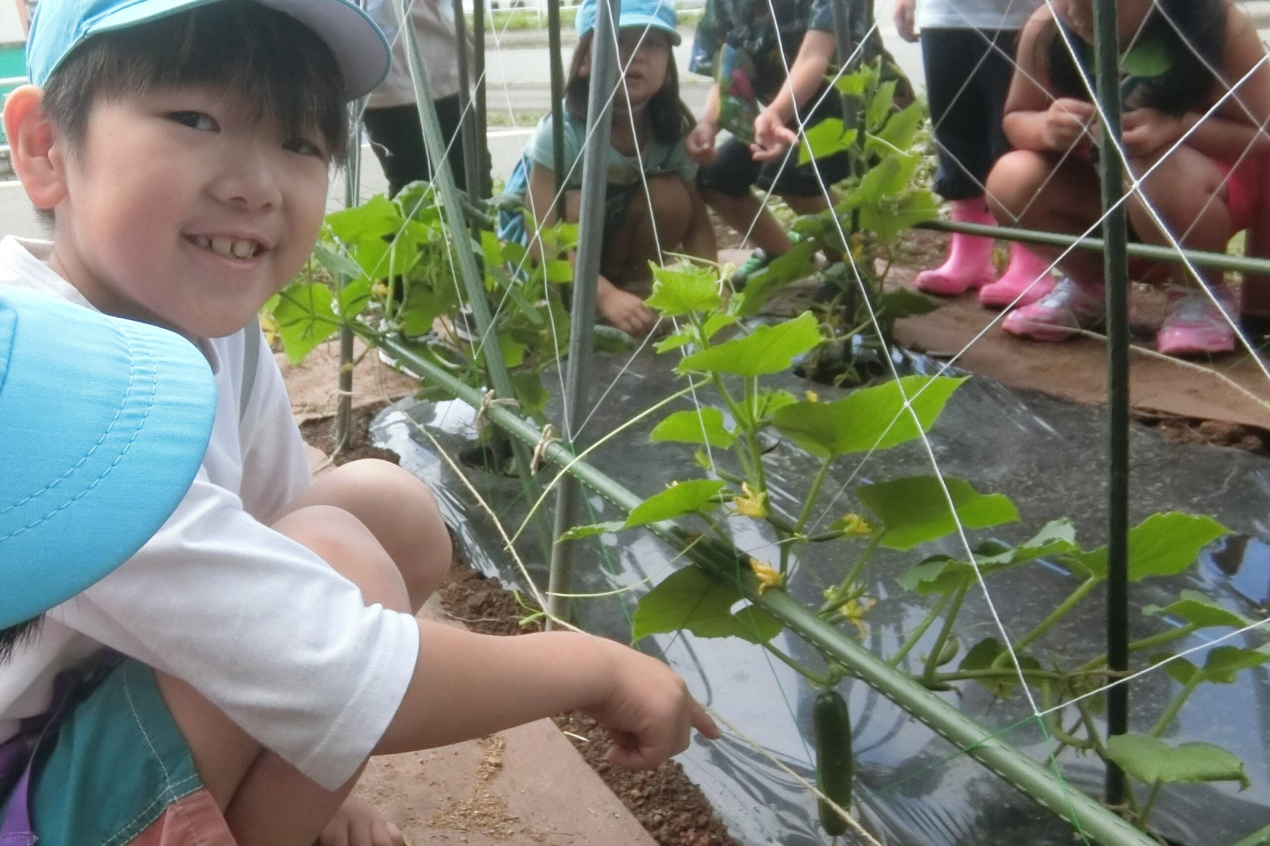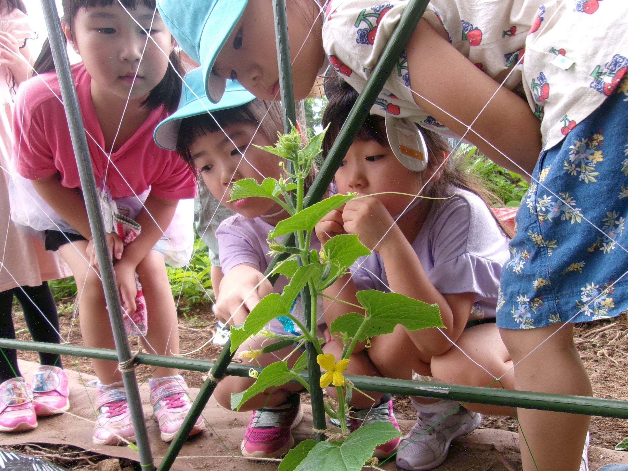 あ!お花!!ちっちゃいきゅうりもあるよ!!!