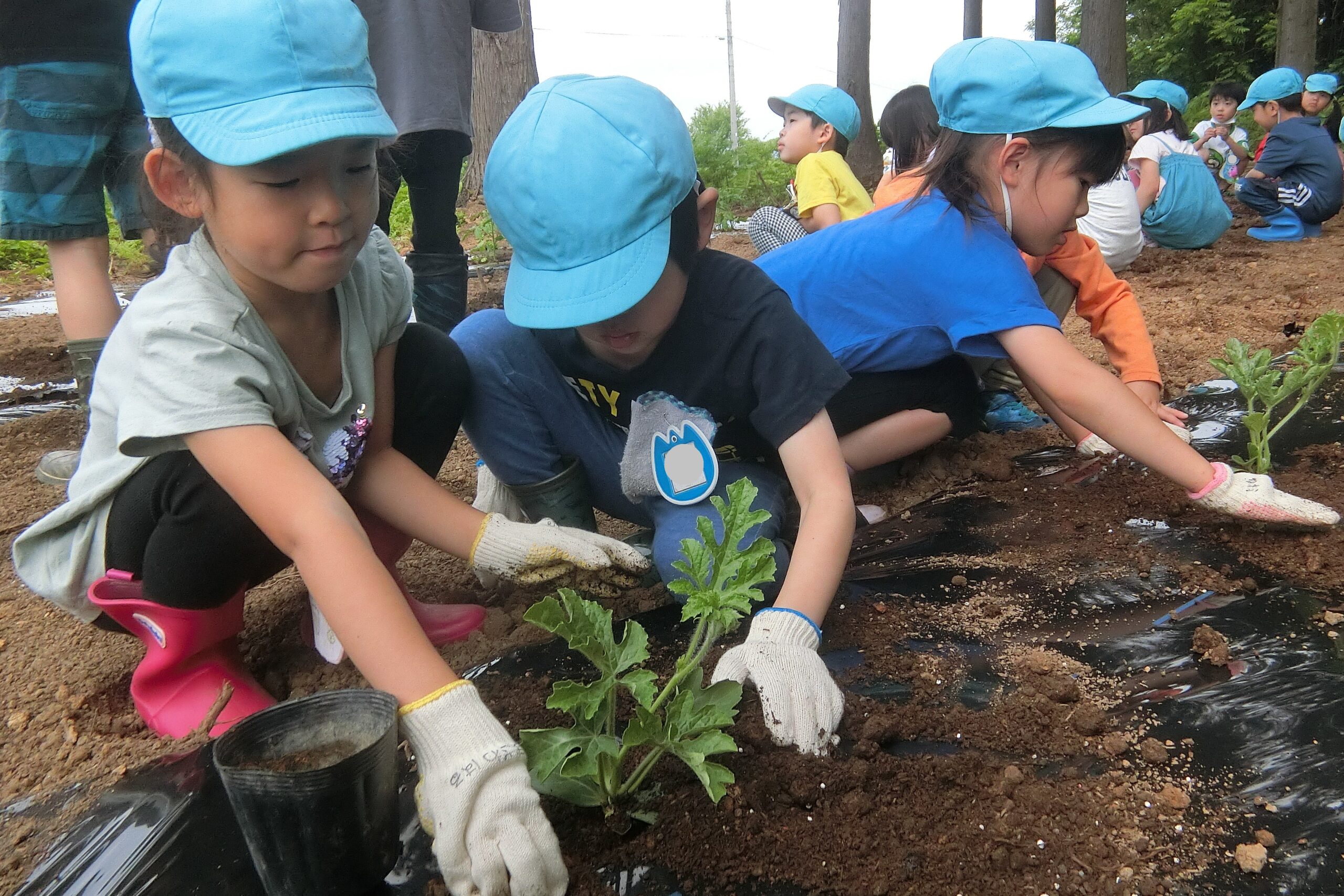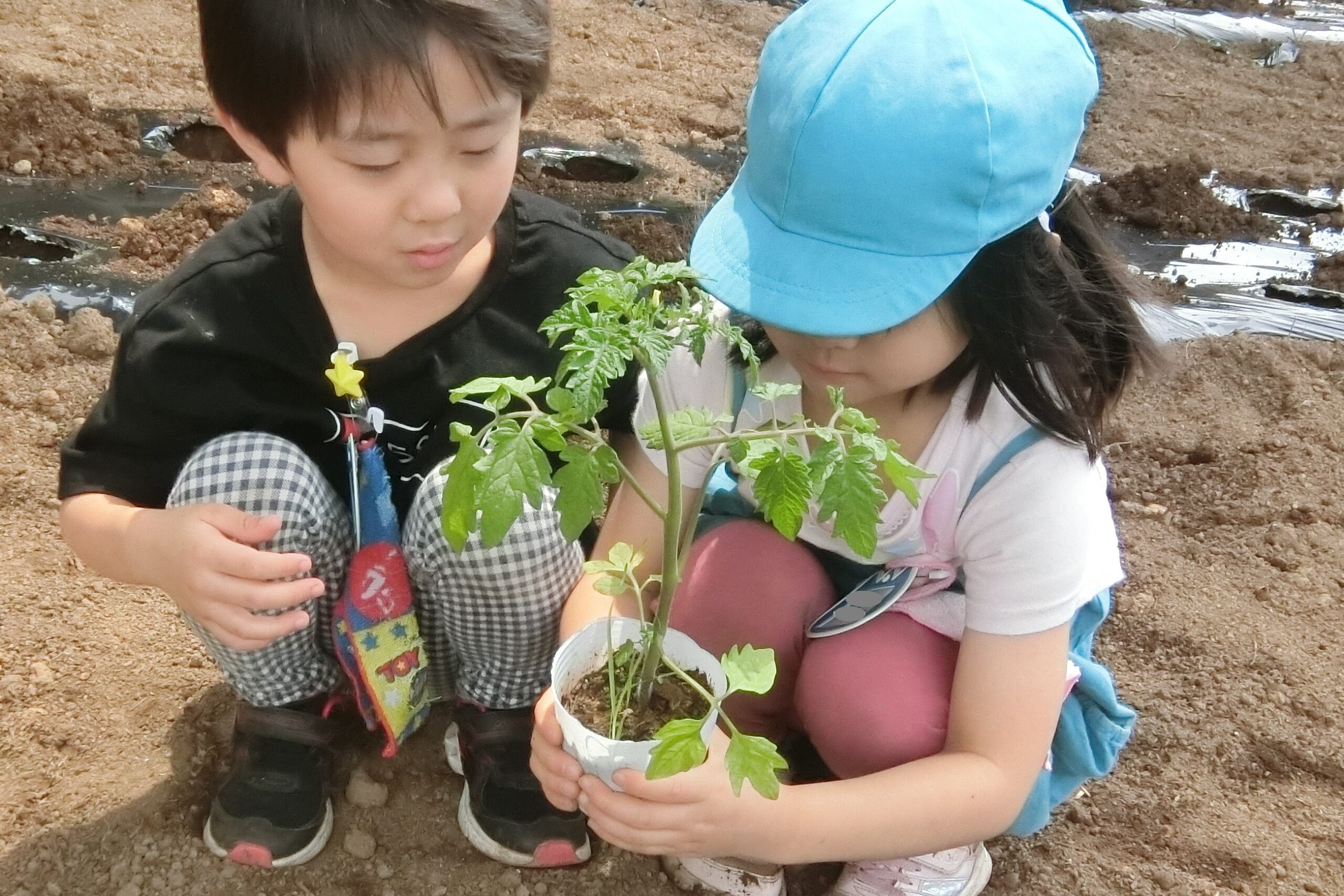 土いじりが大好きなたいよう組さん(5歳児)がはりきって苗を植えました😊