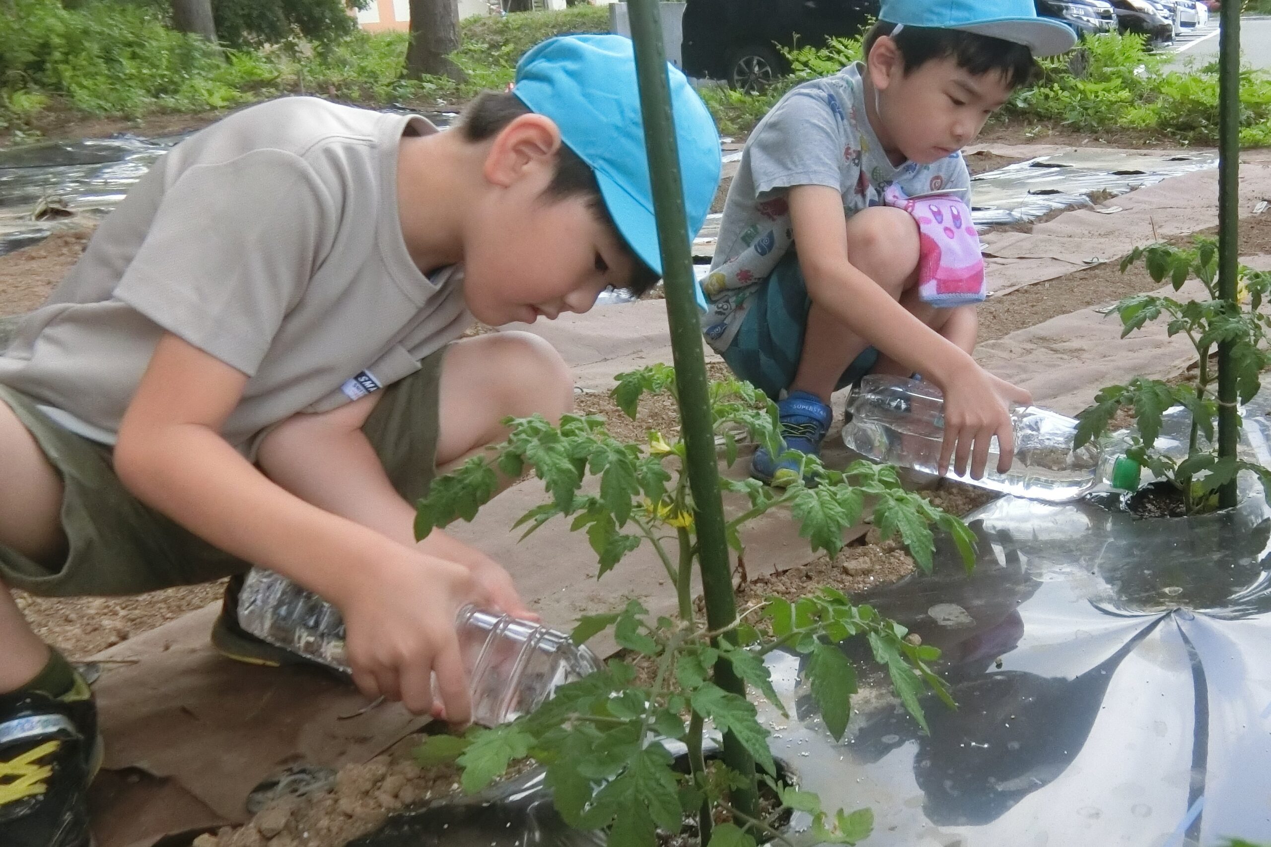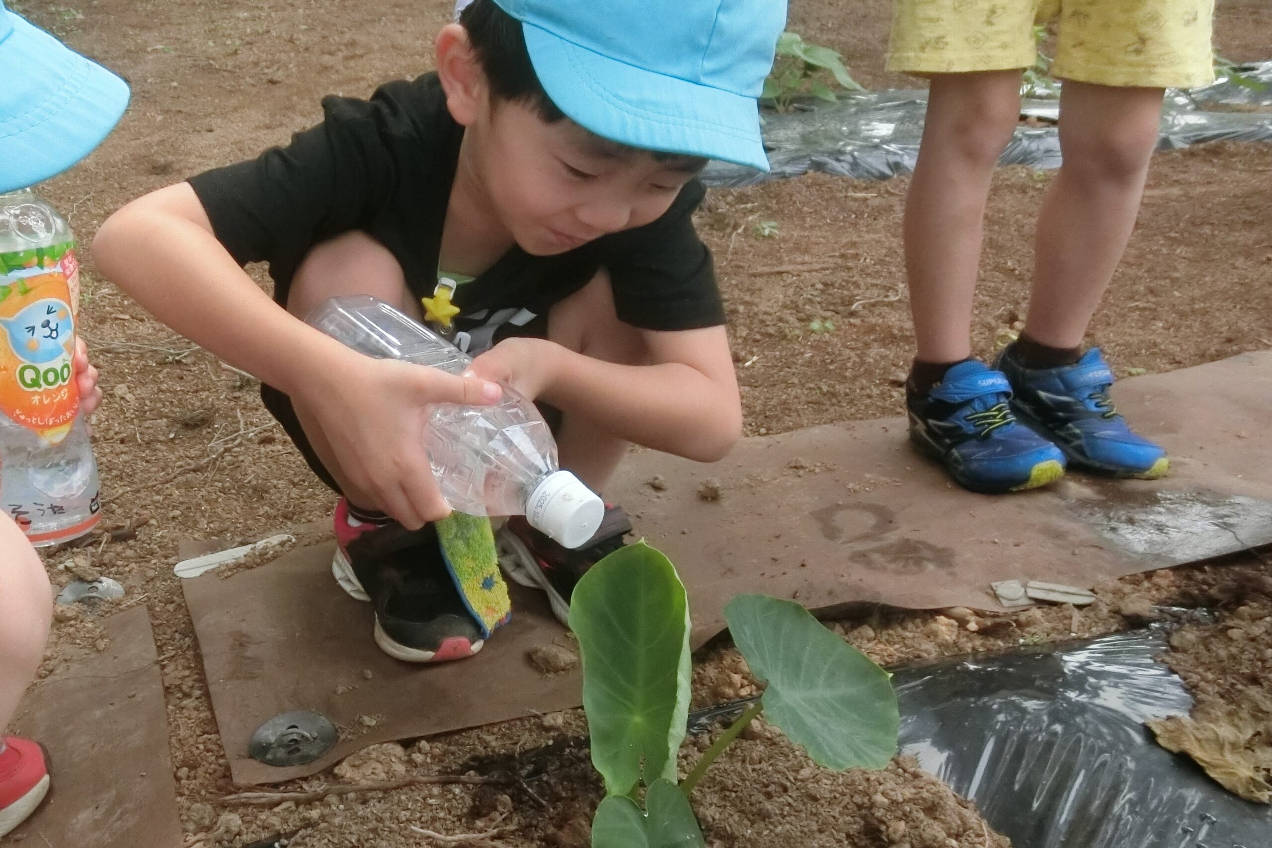 水かけが必要になって、ペットボトルを家から持ってくることになりました。