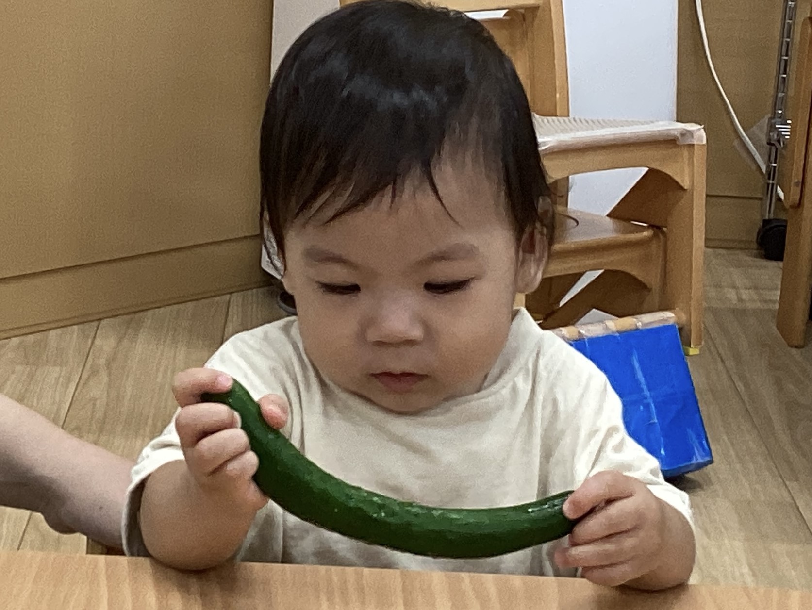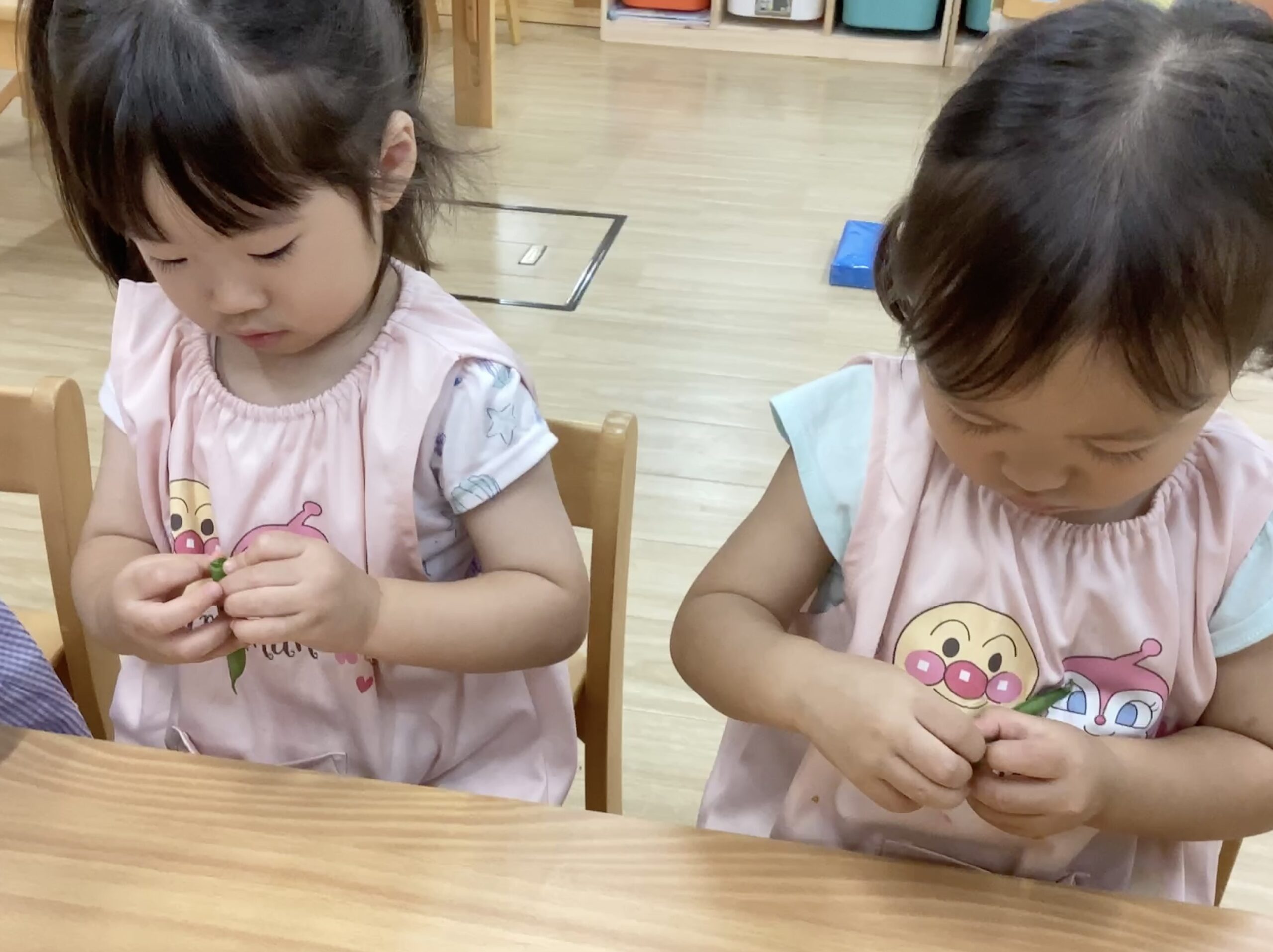 先生に野菜を紹介してもらうと、興味津々の子ども達😊