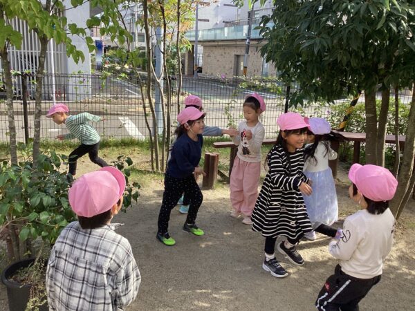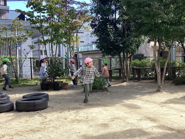 そして園庭に出て…、 お話ししてみたり、 みんなでおにごっこしてみたり、