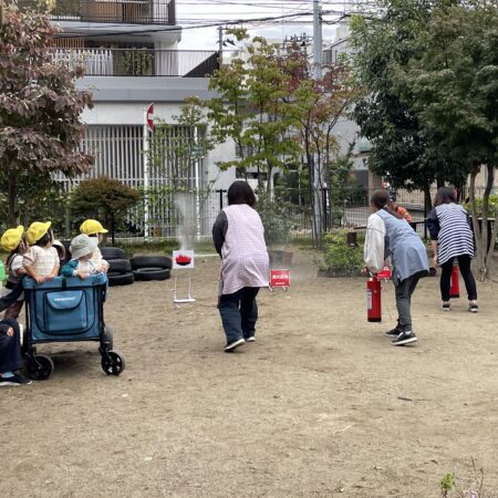 もしもの時に備え、避難経路の確認や職員の消火訓練を実施。