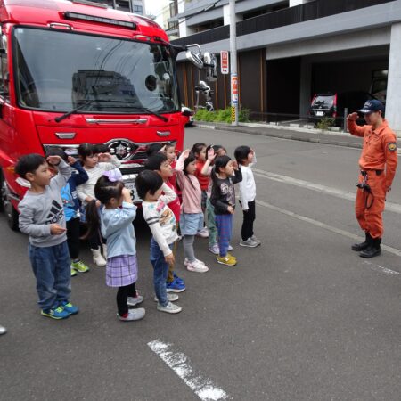 「はしご消防車はビルの何階まで届きますか?」など気になることを沢山質問していましたよ~。