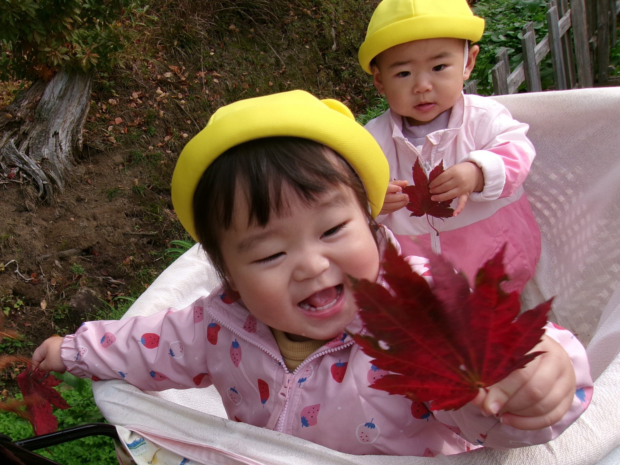 ゆめ組さん(0歳児)がぼうけんの森へ出かけました。 しゅっぱーつ♬