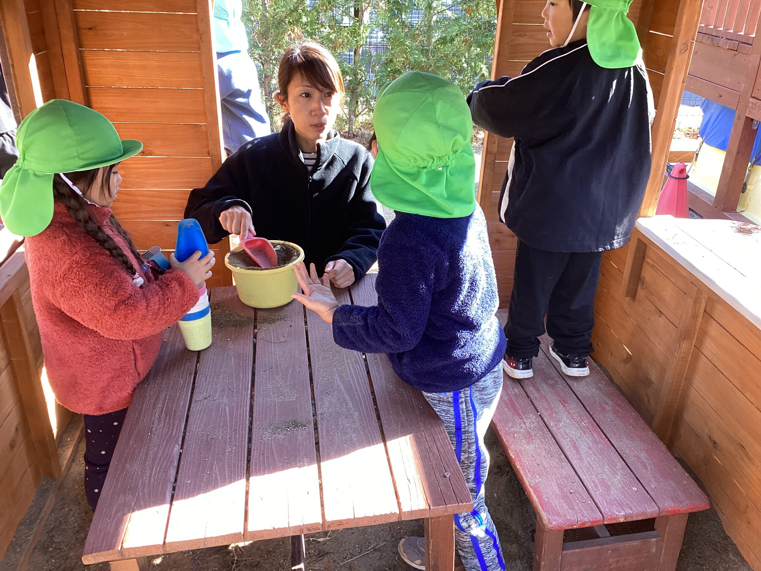 ばら組さん(3歳児)が園庭で遊んでいると…、