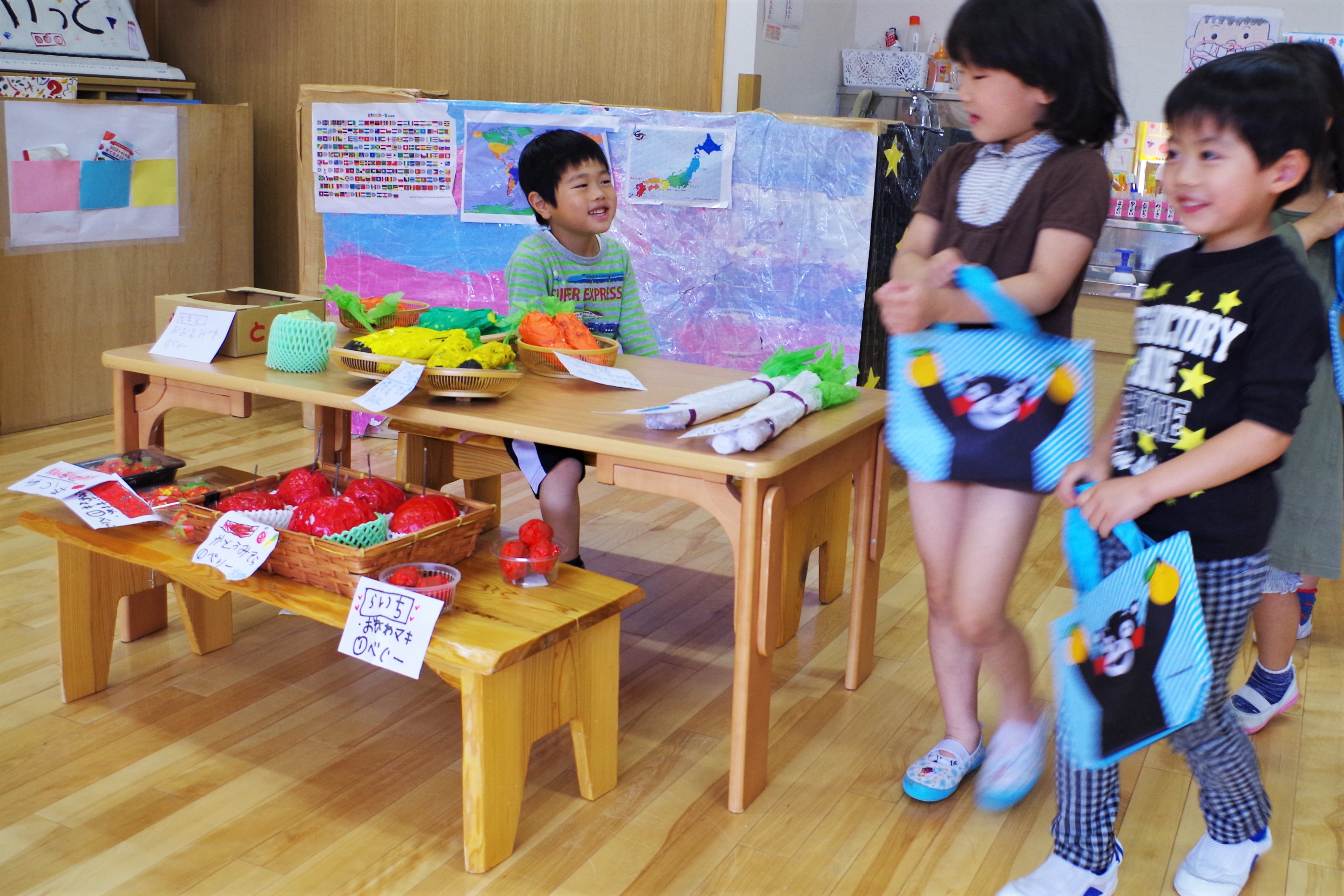 お店屋さんごっこ、お店の名前は「たいようマーケット」に決定!!