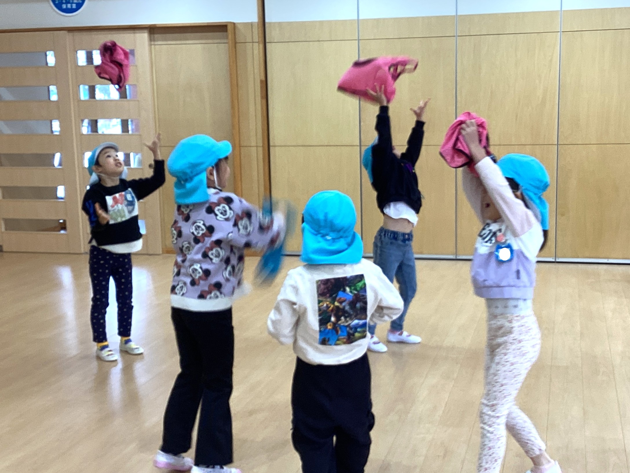 挨拶をするとすぐにビブスを渡されて頭の上キャッチ!?