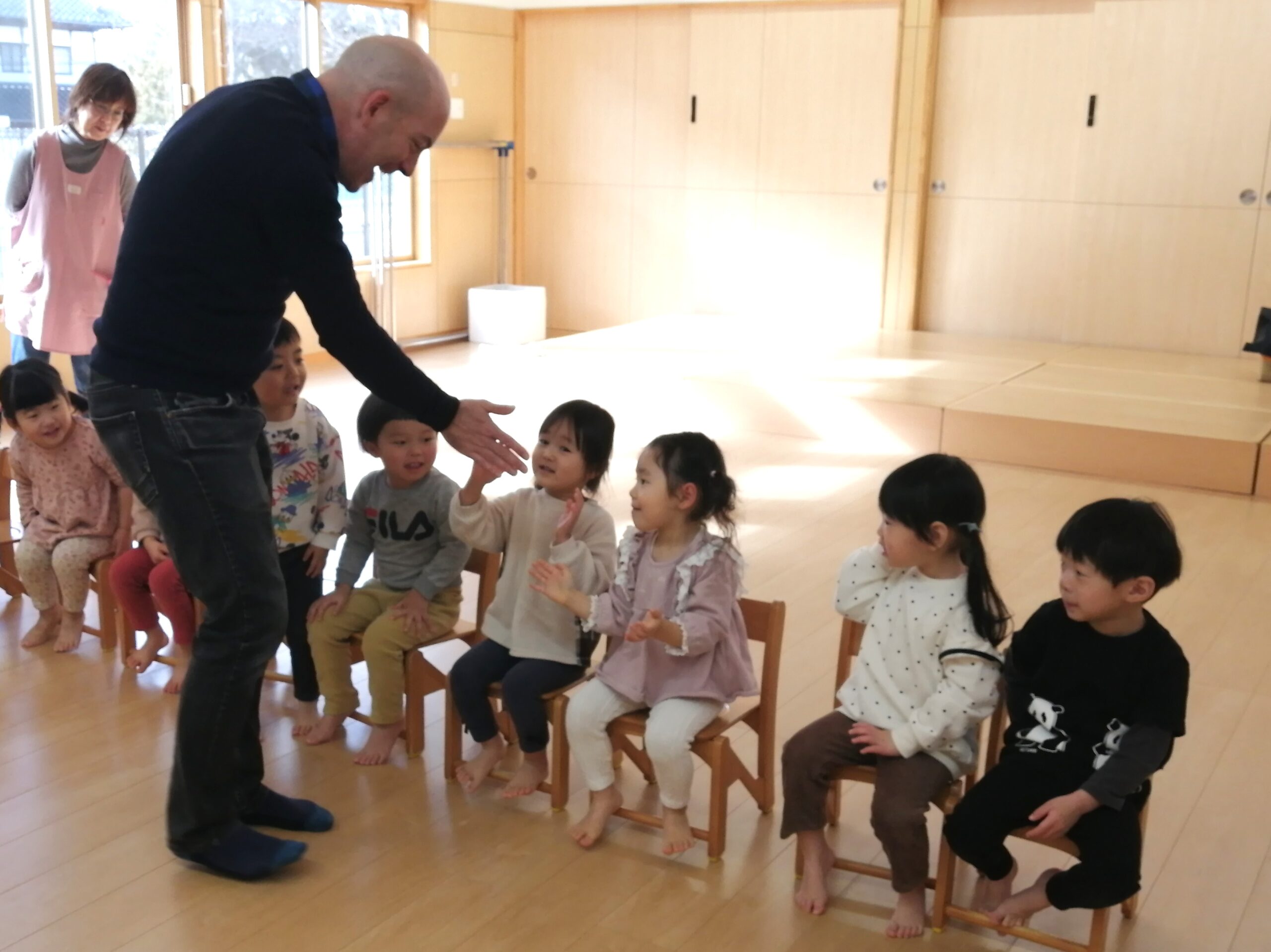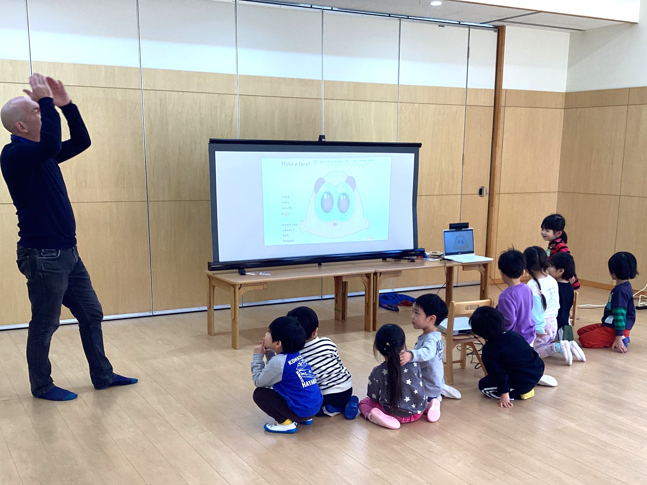 「hello〜」と嬉しそうにアンドリュー先生との挨拶!✋
