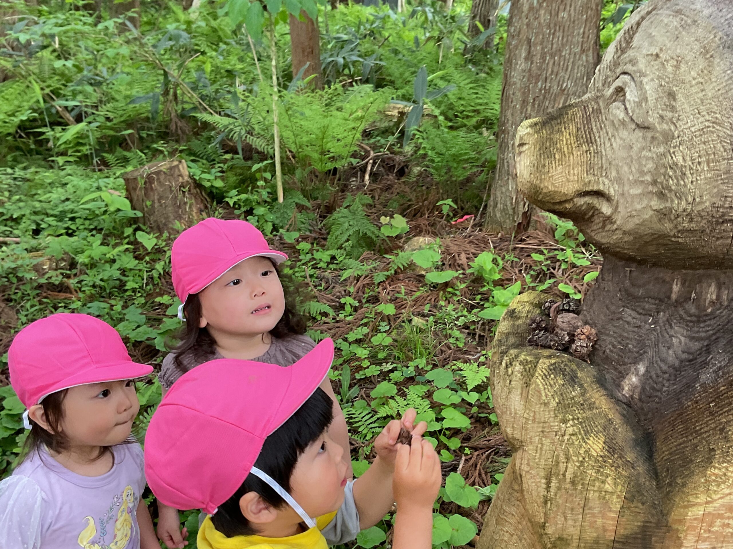 最初は森のくまさんにご挨拶。 木の実あげるよ♬