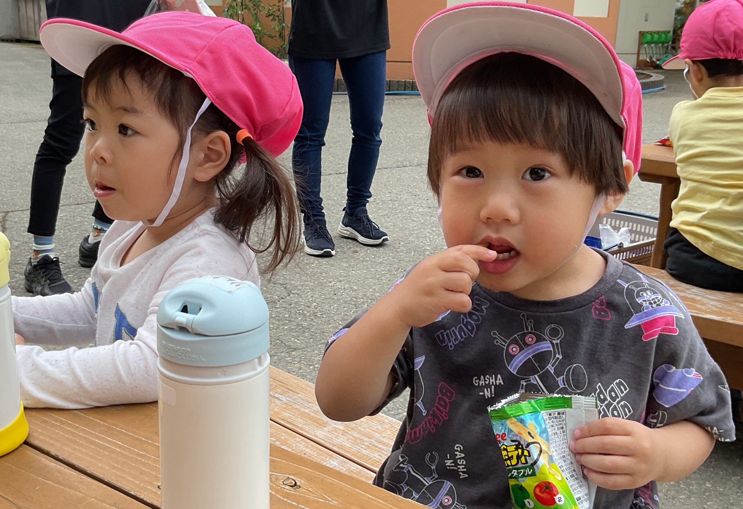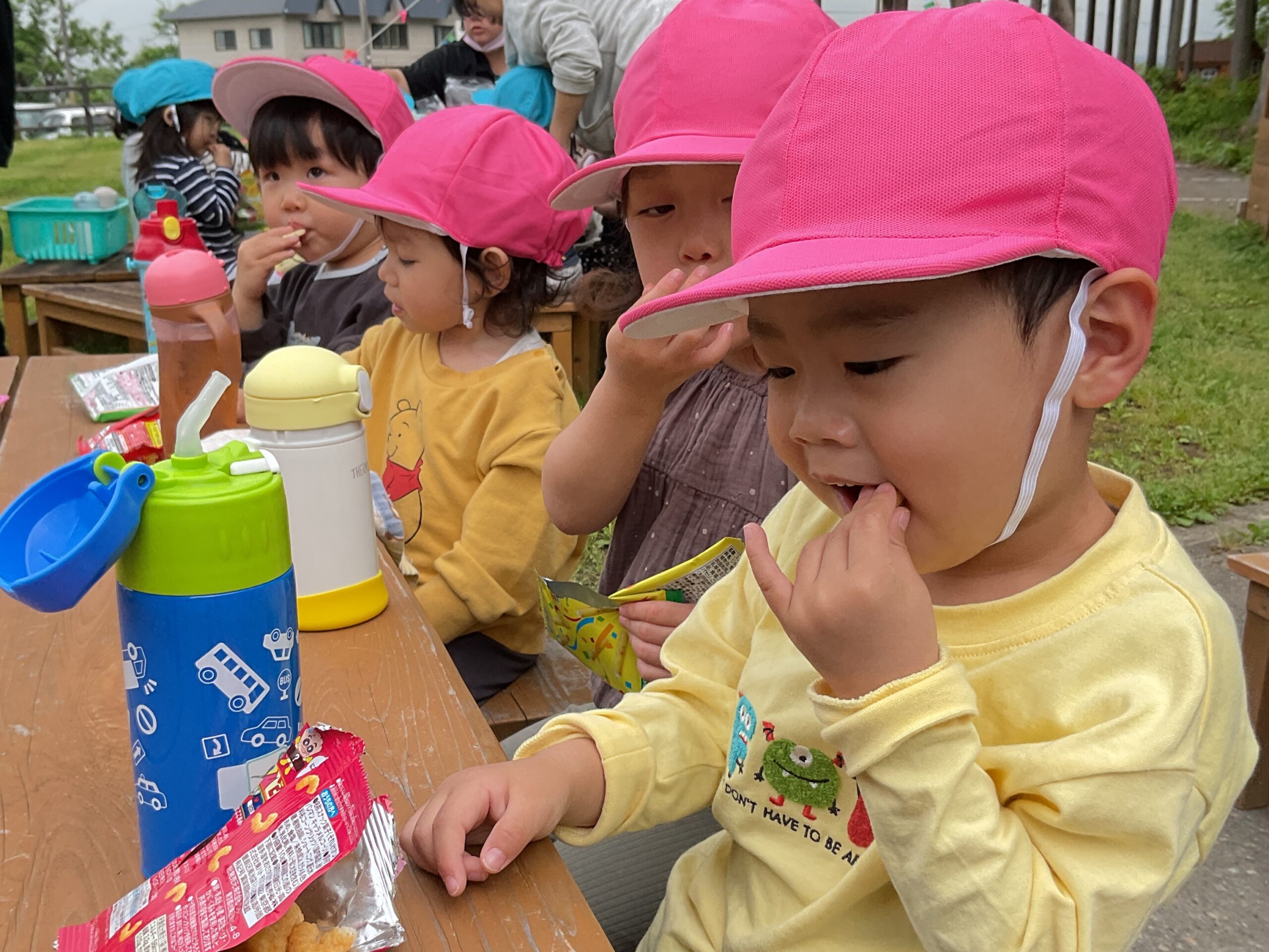 それから前庭行っておやつタイム✨ みんなで食べるとおいしいね!😊
