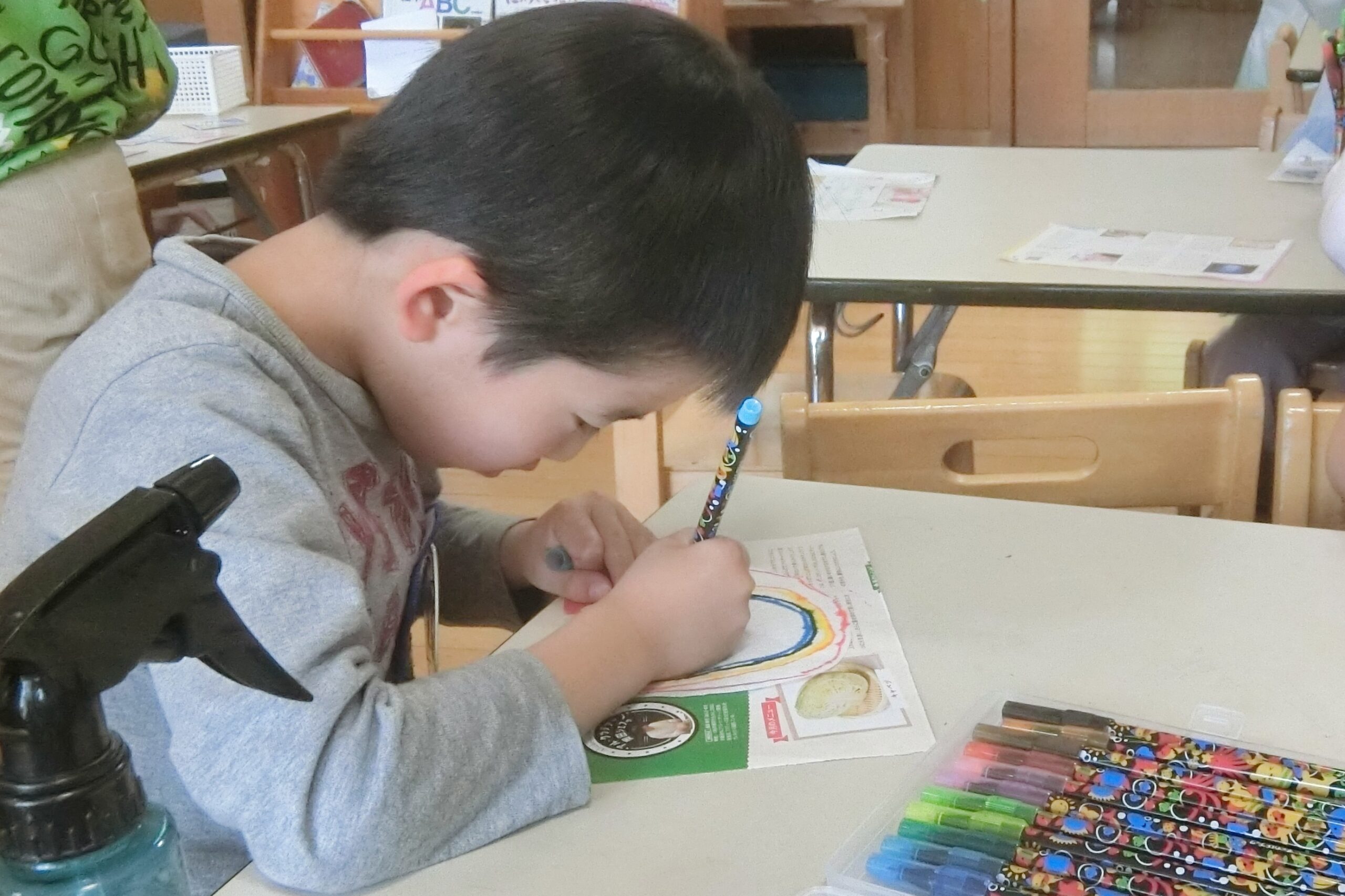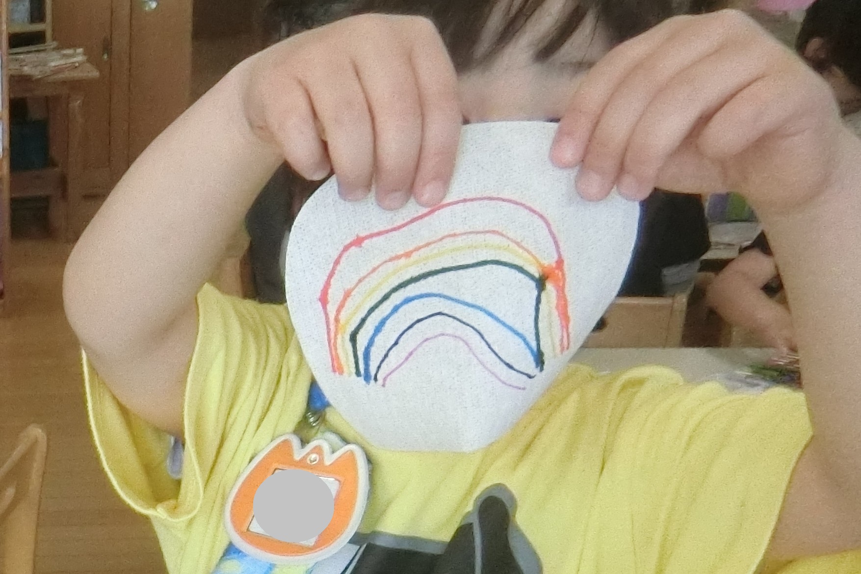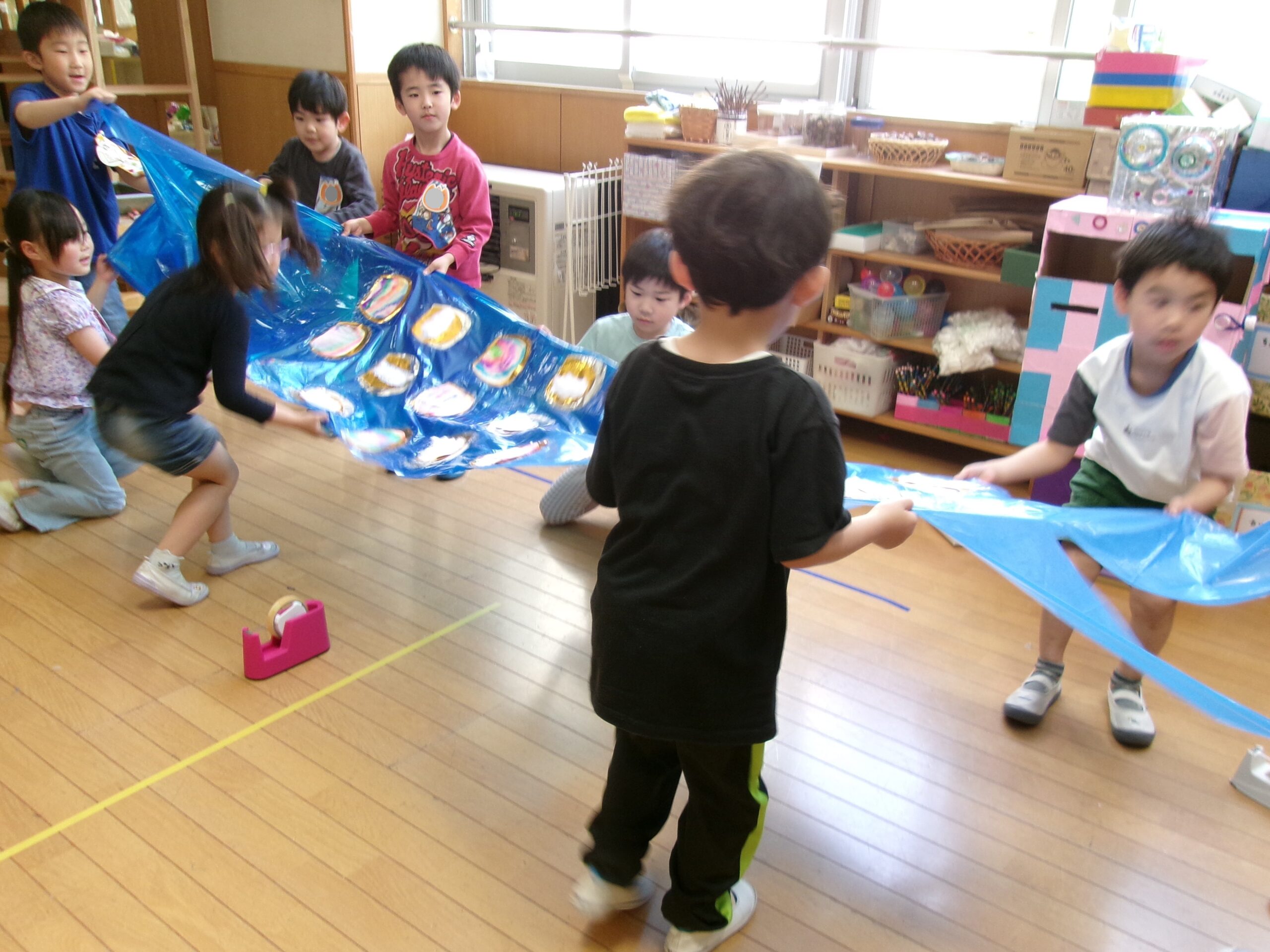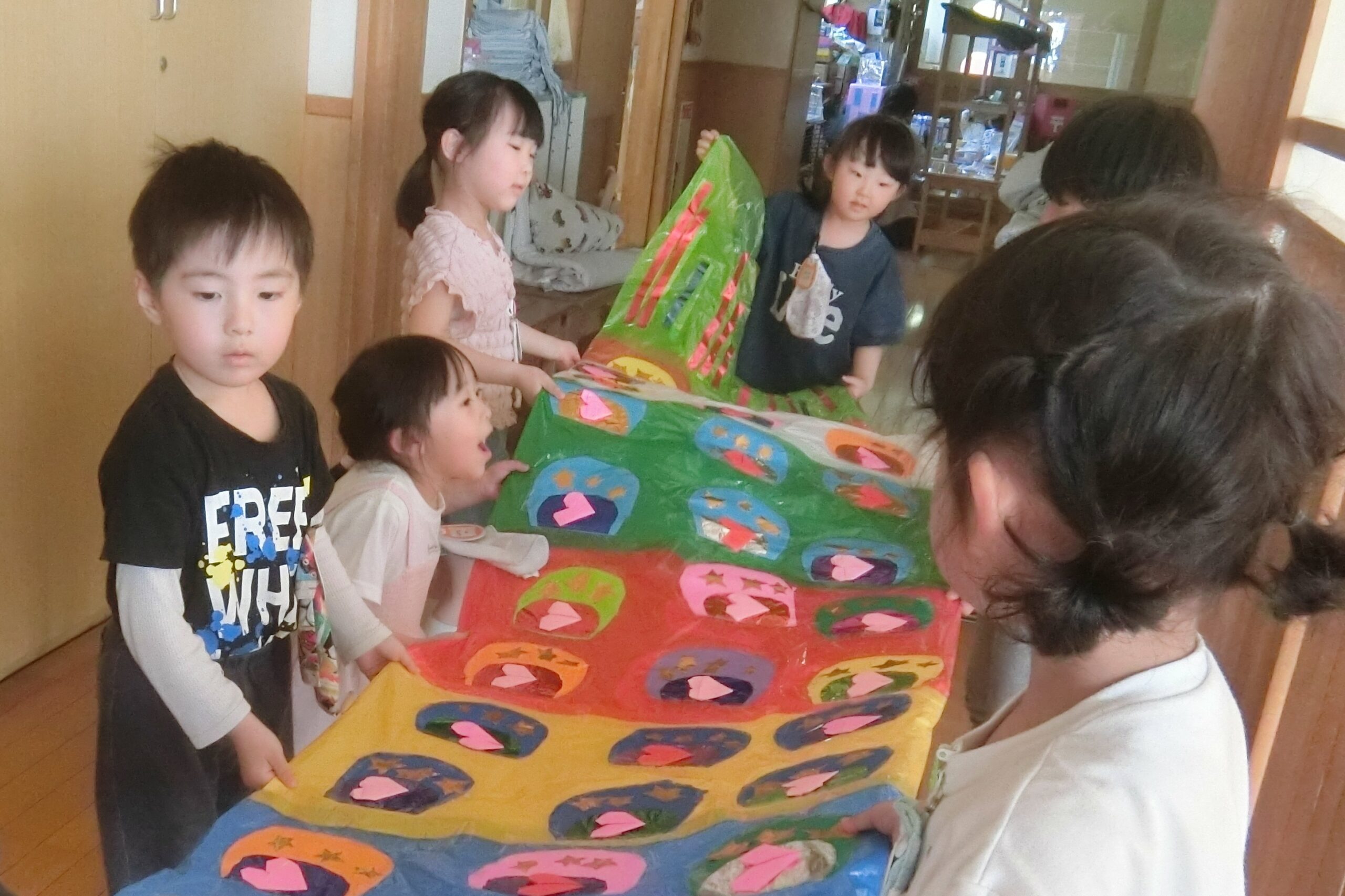 たいよう組(5歳児)の二つ目の大型こいのぼりのあおぞらくんを紹介。