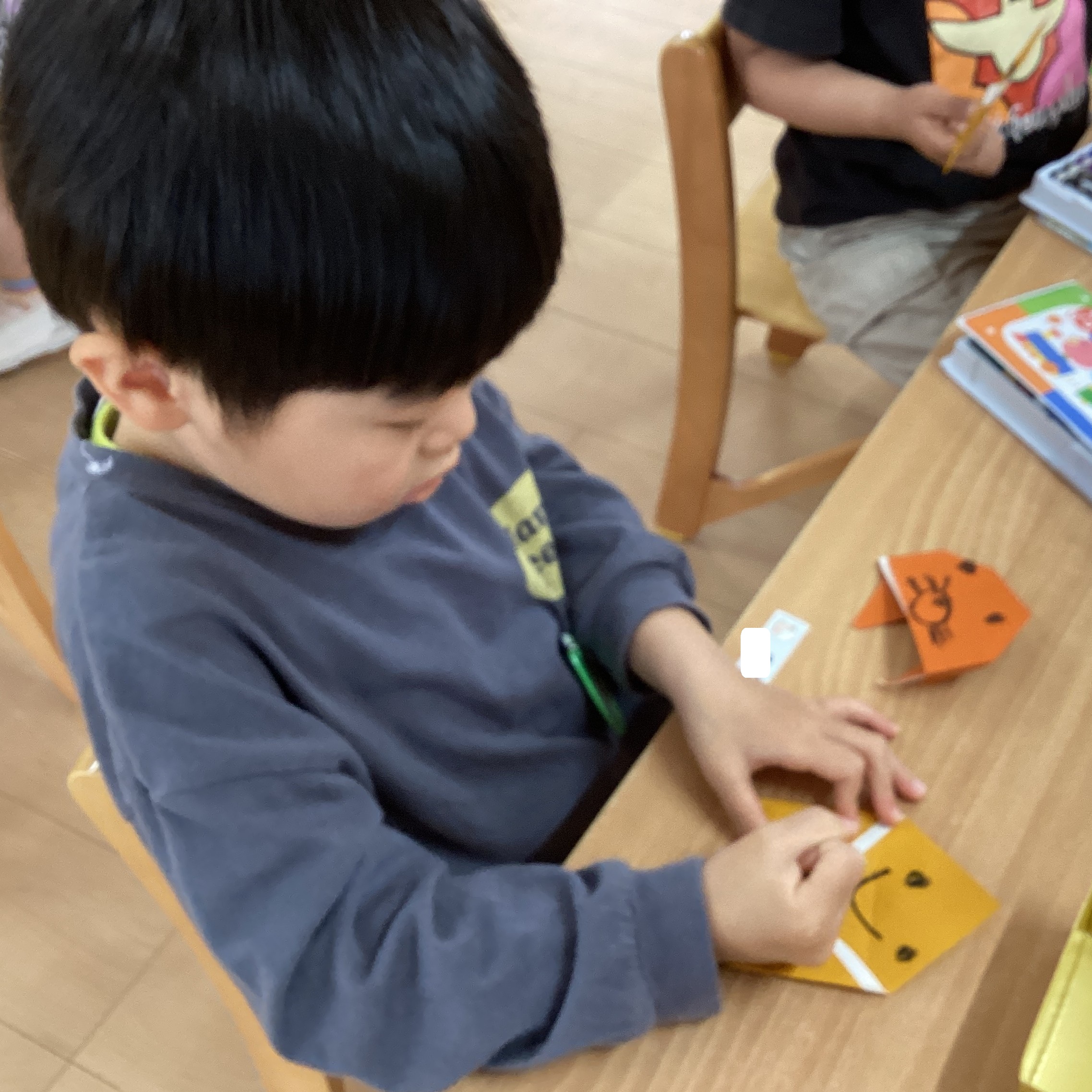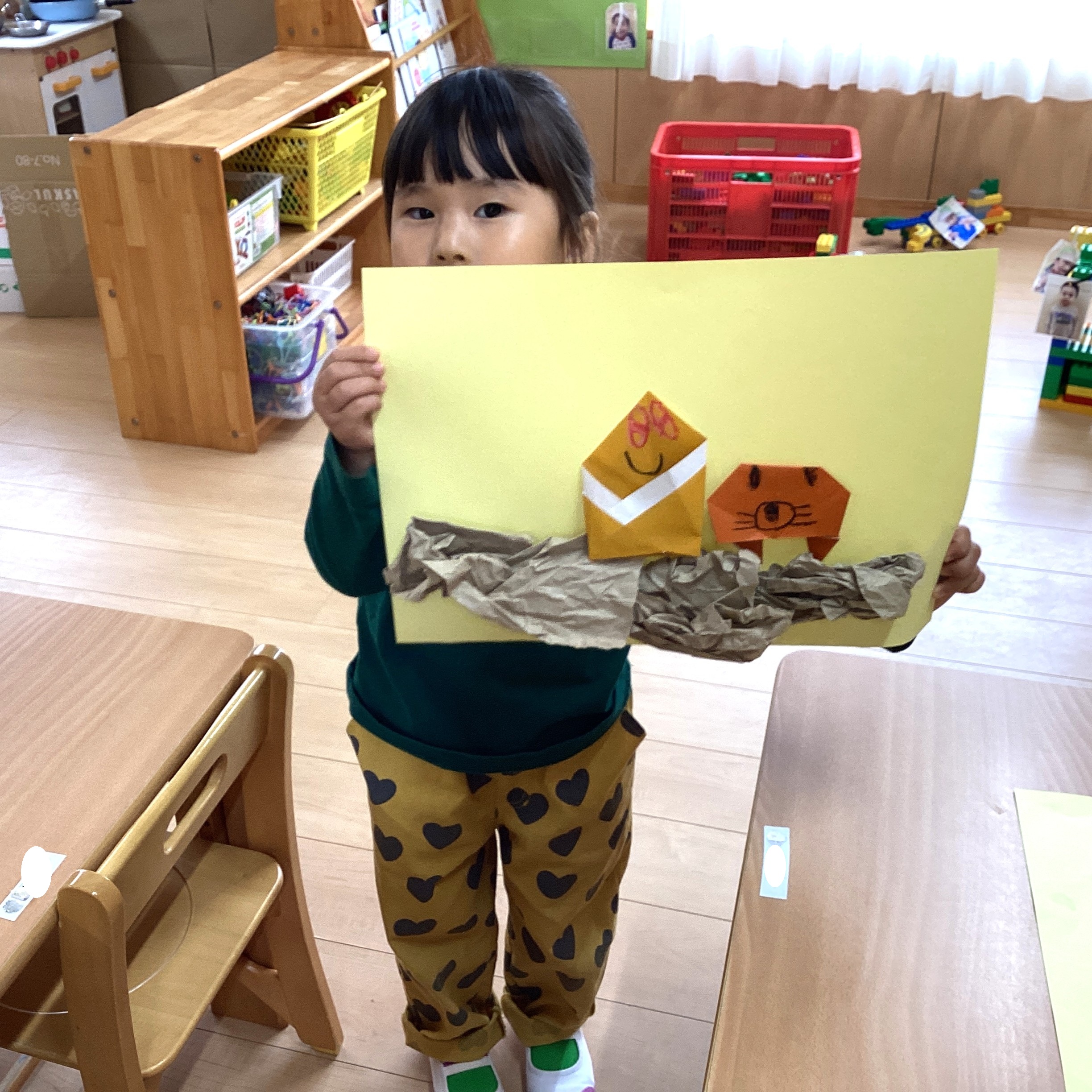 ゆり組さん(4歳児)が砂場で4月からモグラを探しをしていました。 あまり見つからないので、今日は折り紙でモグラにチャレンジ🌟