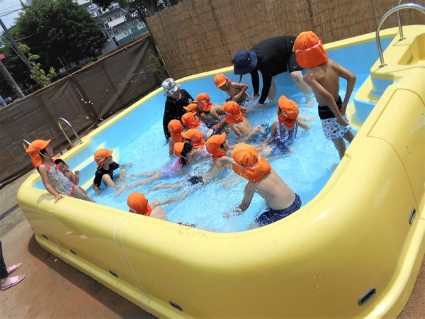 ひまわり組、ゆり組は久しぶりのプールで、みんな笑顔で楽しんでいました!