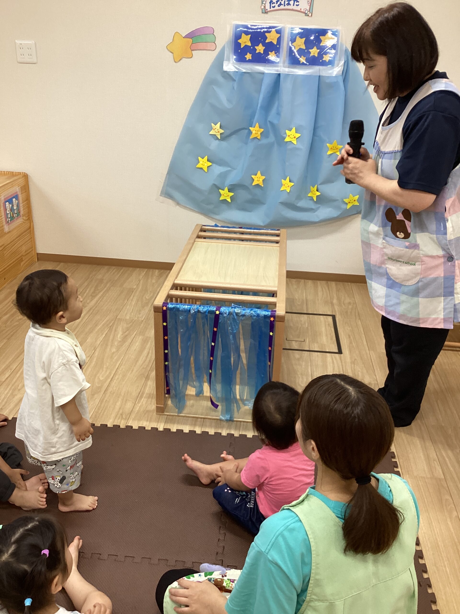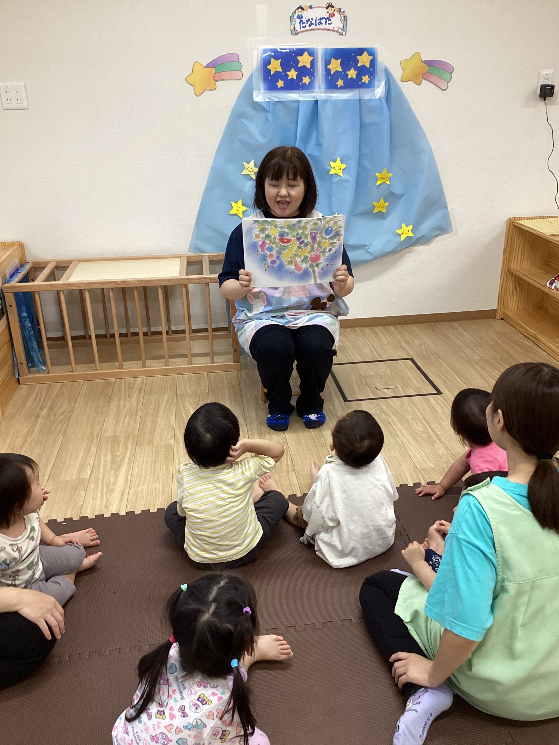 始めに先生が七夕のお話を読んでくれました😊