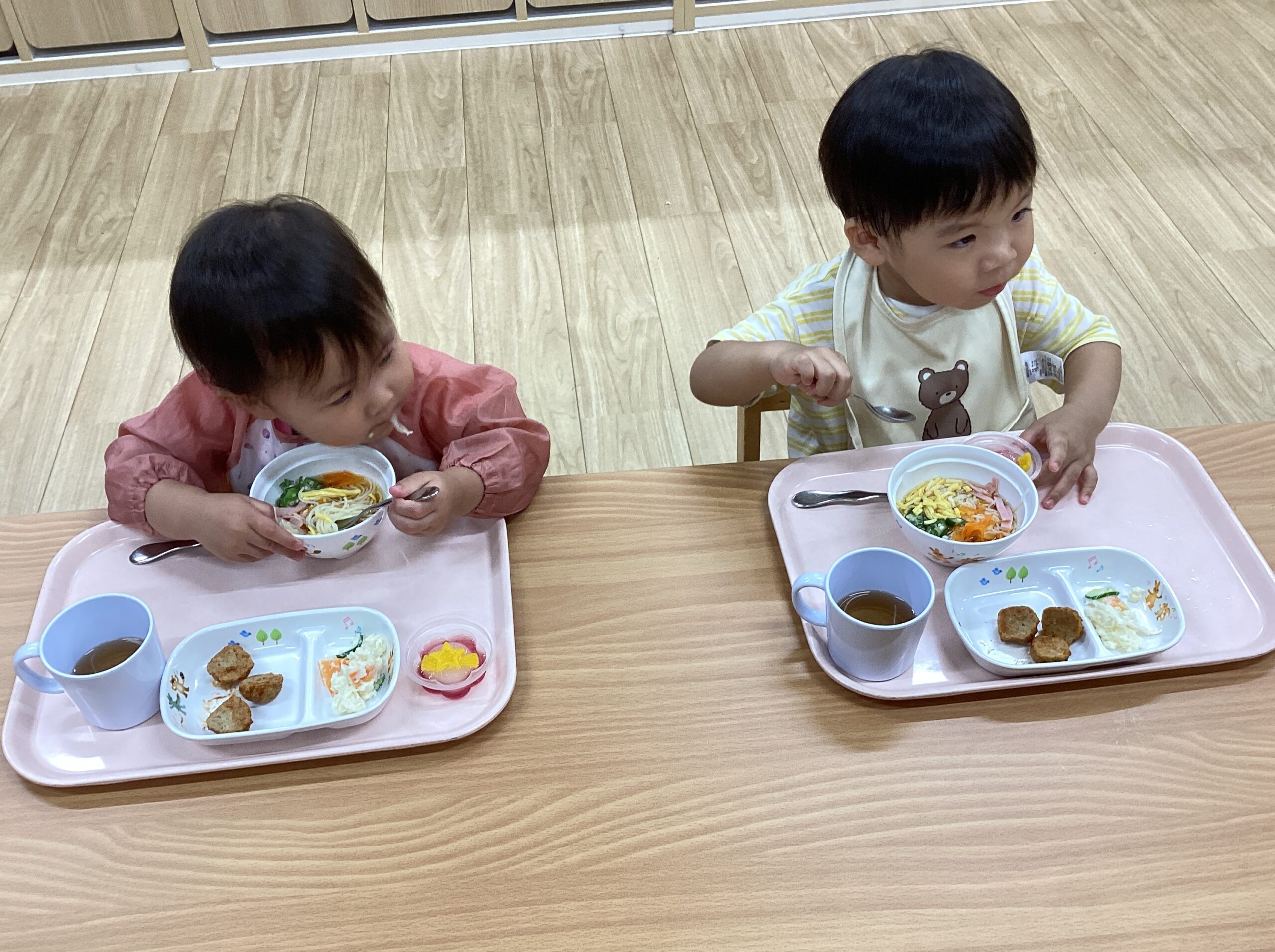 給食は七夕そうめん!ツルツル美味しいね~😋みんなの願い事、叶いますように