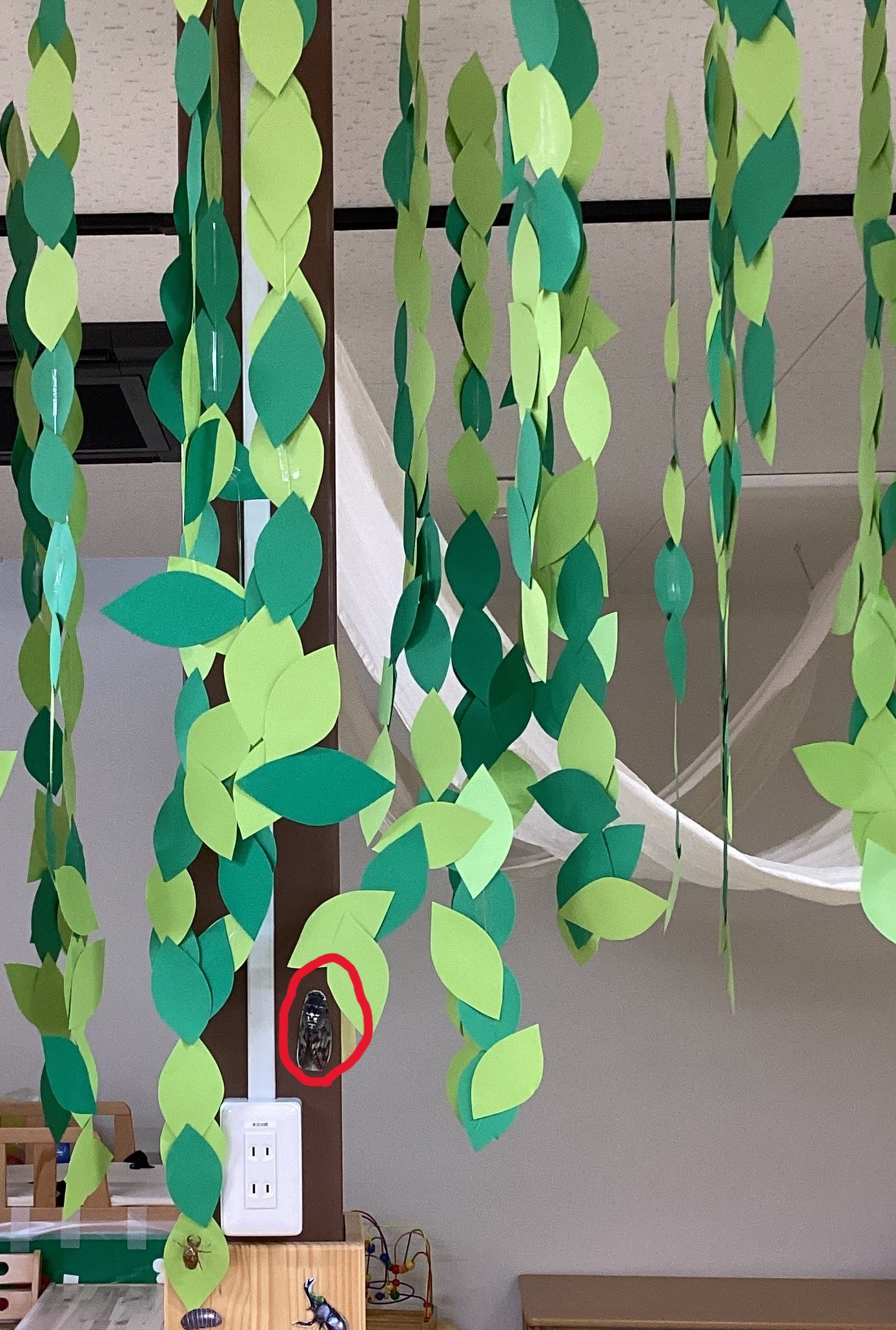 そこで、園内に新しく作った木にもセミをの写真を貼ってみました。