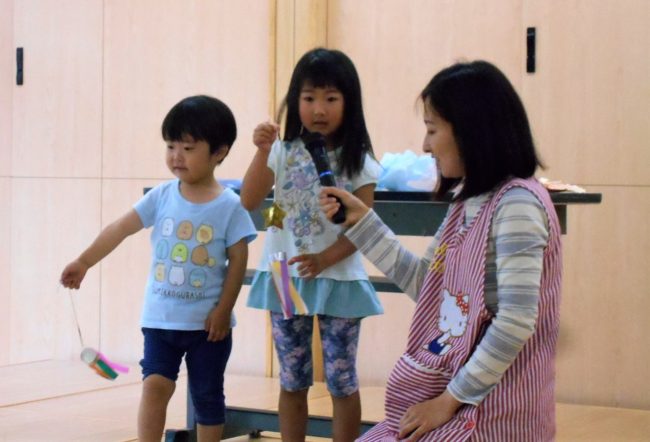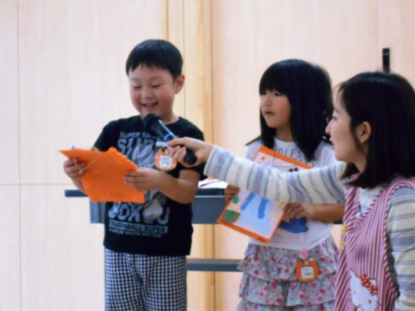 以上児クラスのお当番さんは、みんなの前で作品の発表もしました!