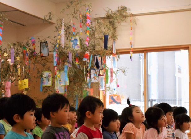 みんなで、たなばたさまの歌をうたったり、七つ飾りの由来の話を聞いて七夕の雰囲気を楽しみました。